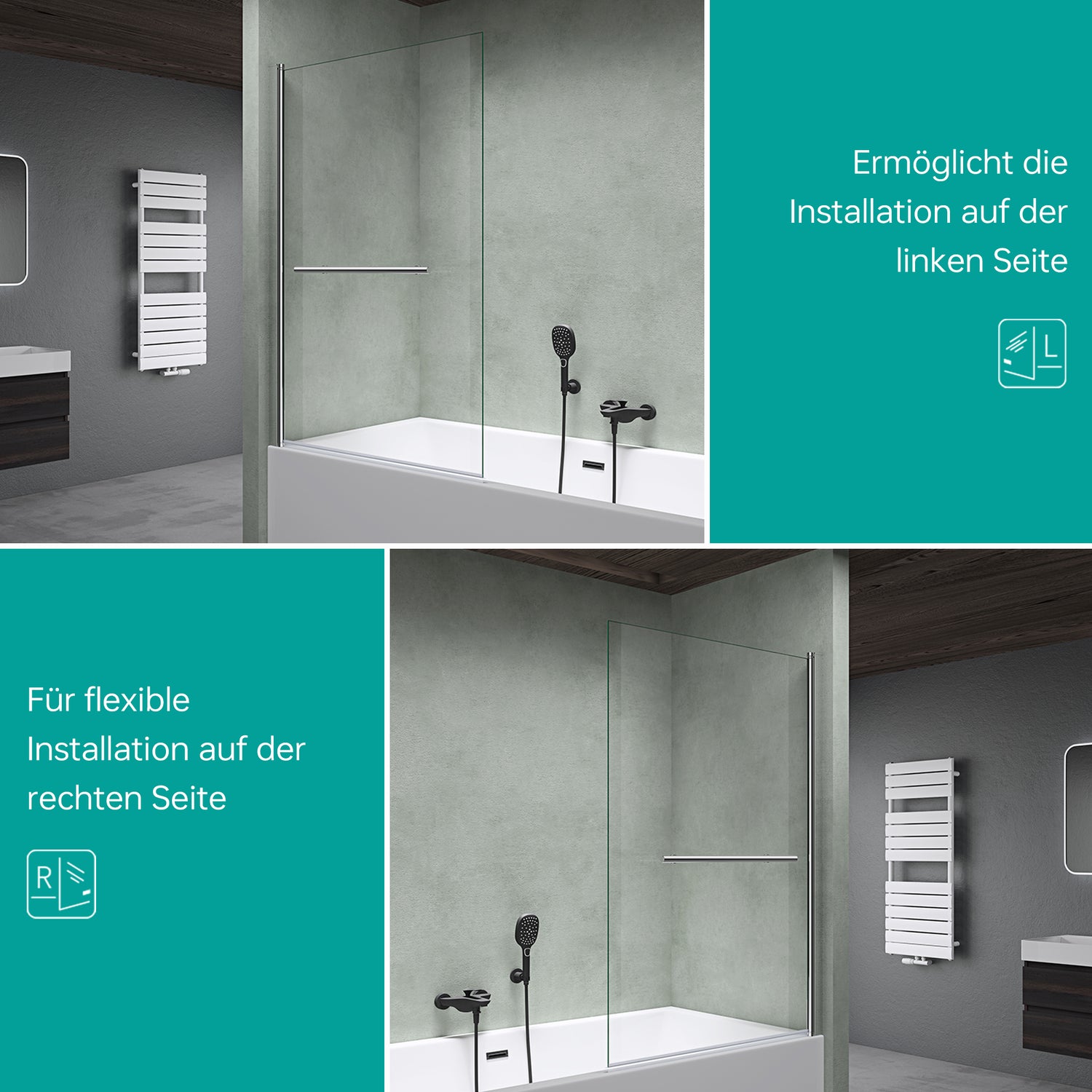 glasvilla Duschwand für Badewanne Badewannenwand faltbar 180° Sicherheitsglas mit NANO 90x140cm Badewannentrennwand Badewannenaufsatz Cortona1121