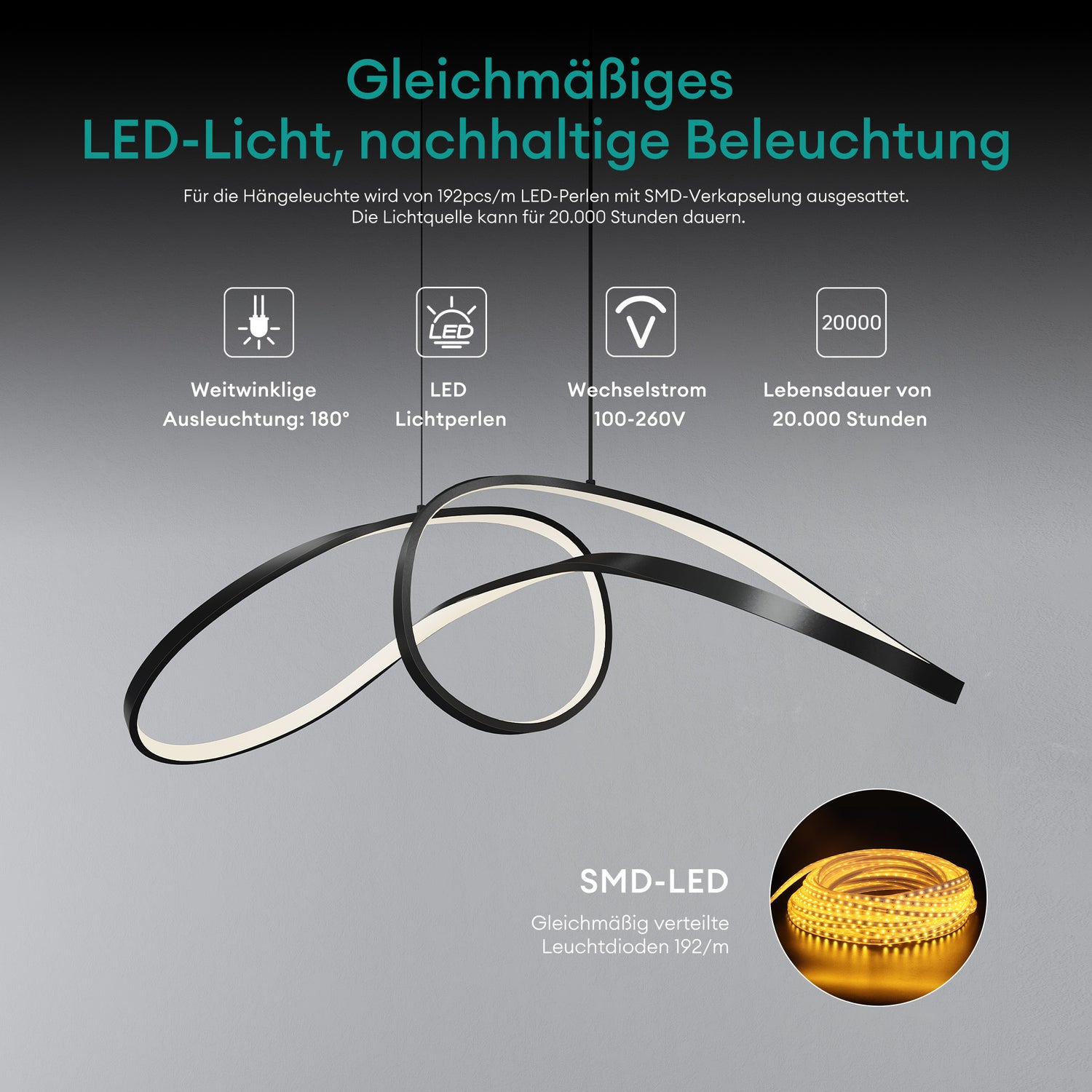 glasvilla Pendelleuchte 90cm LED Hängelampe Dynamisches Wellendesign 3000K/4000K/6000K Verstellbares Kabel 30W Schwarz Hängeleuchte für Esszimmer Wohnzimmer Schlafzimmer