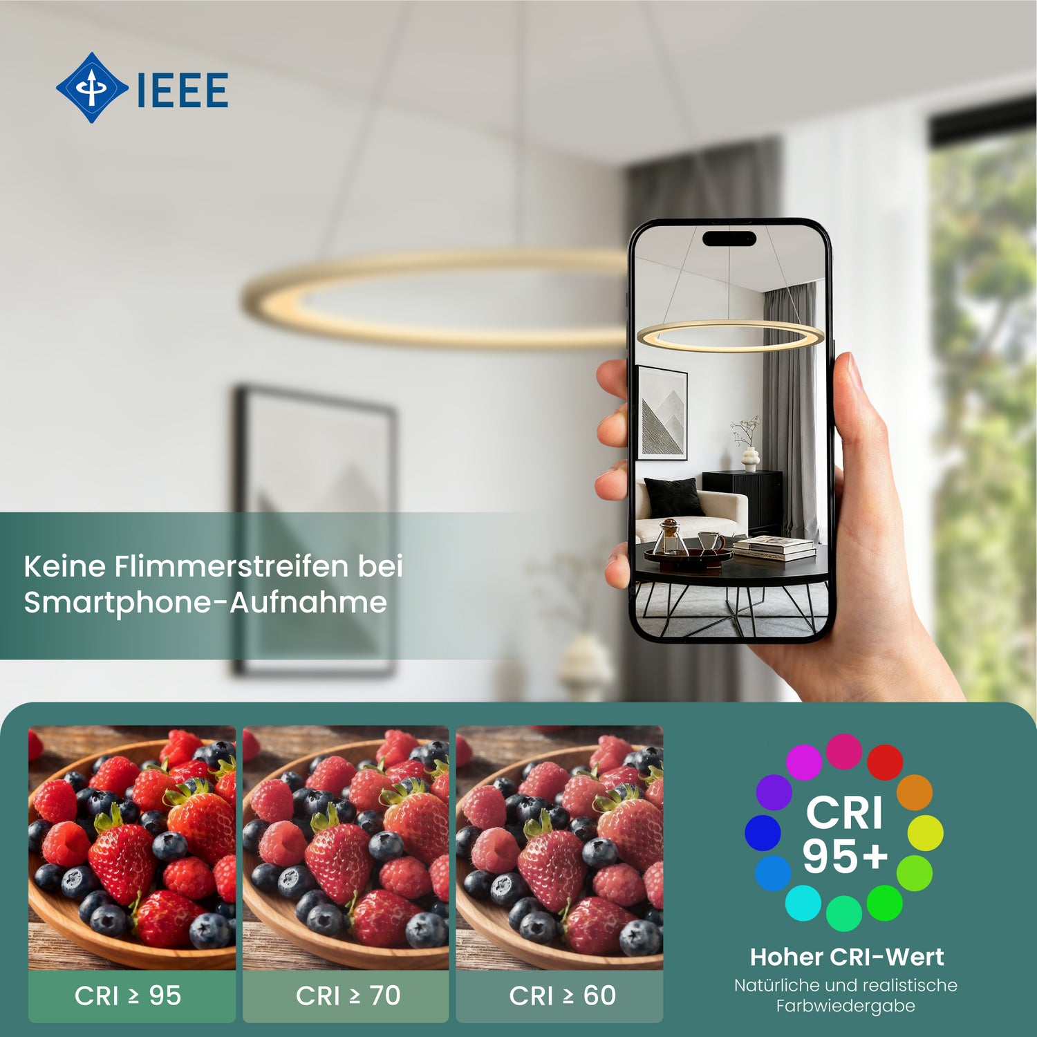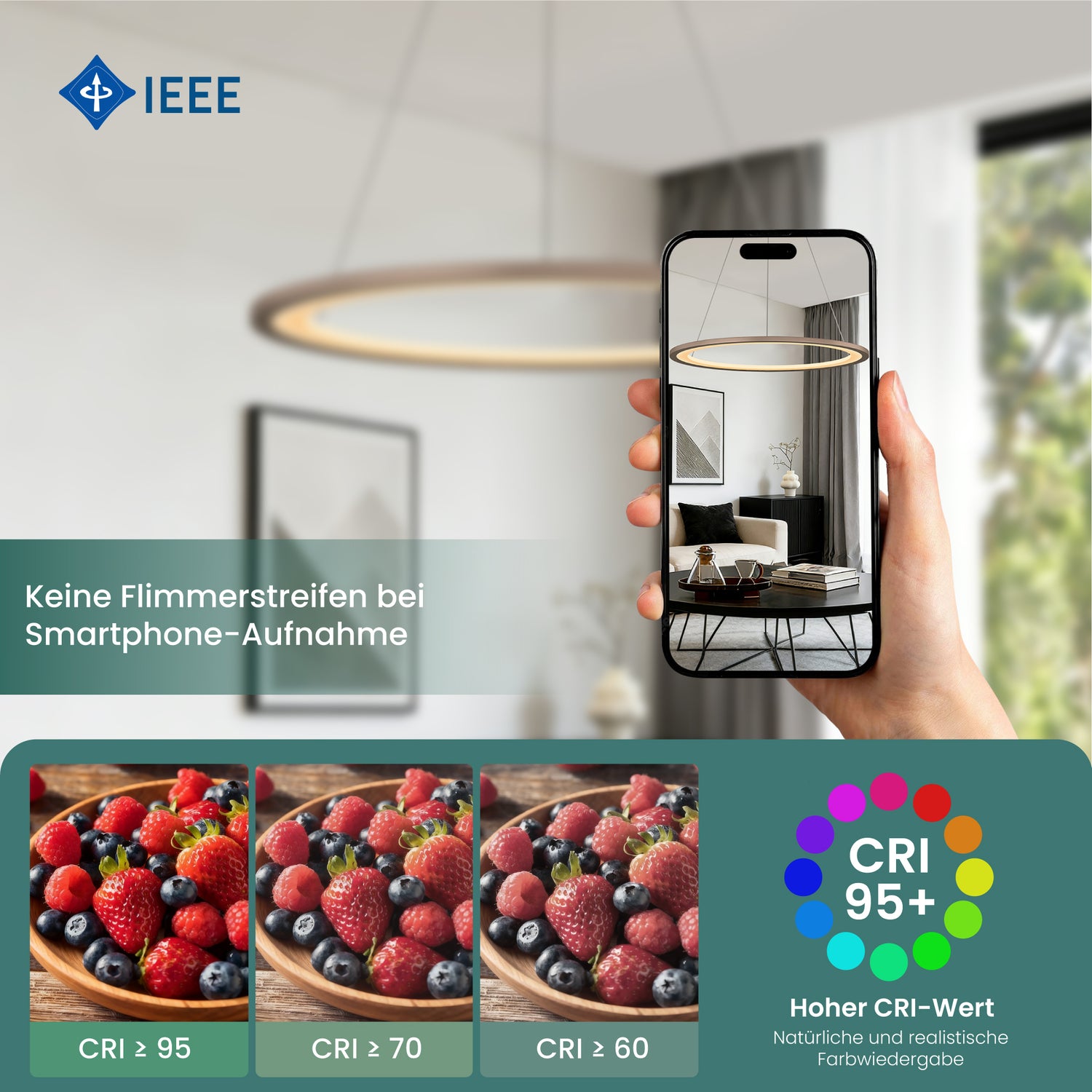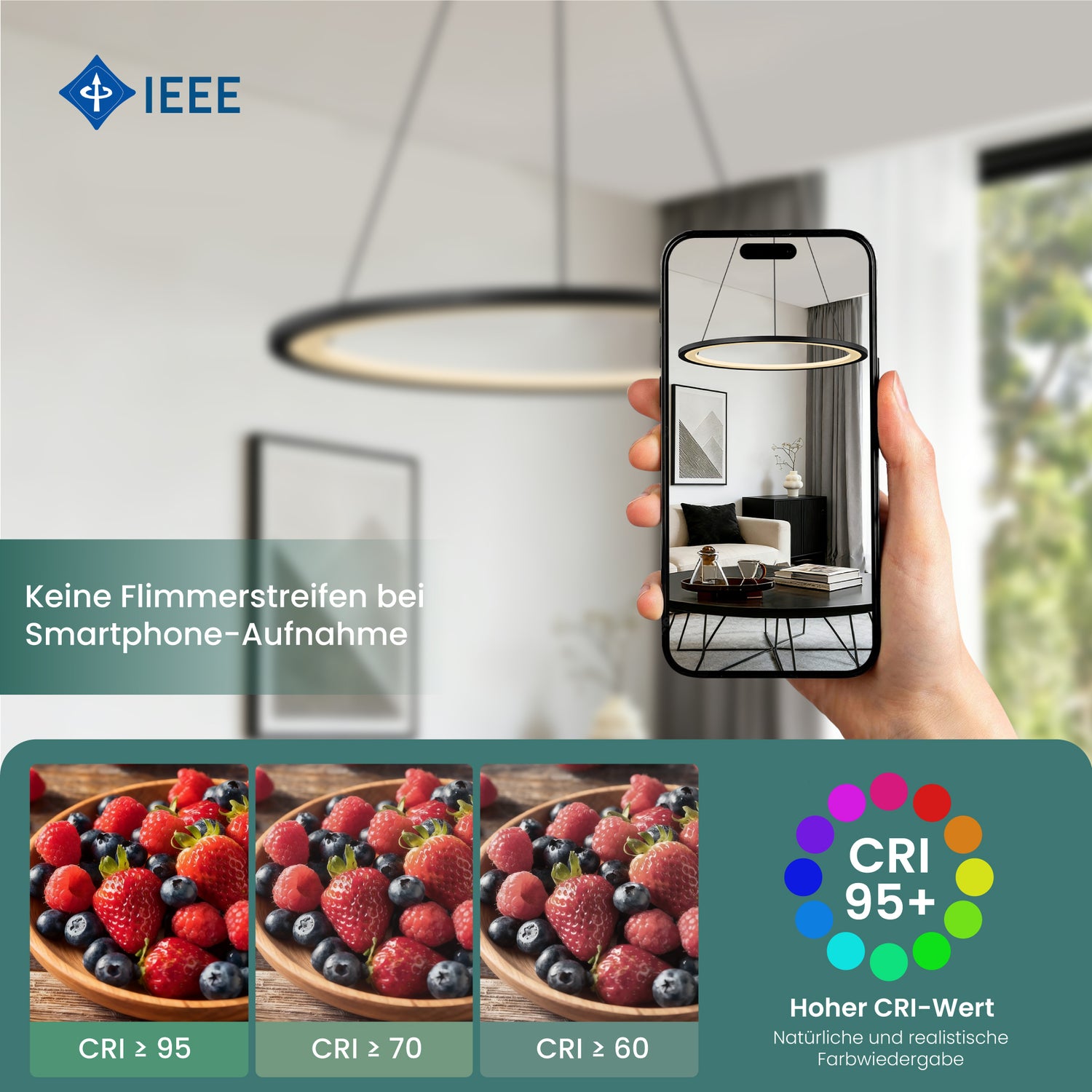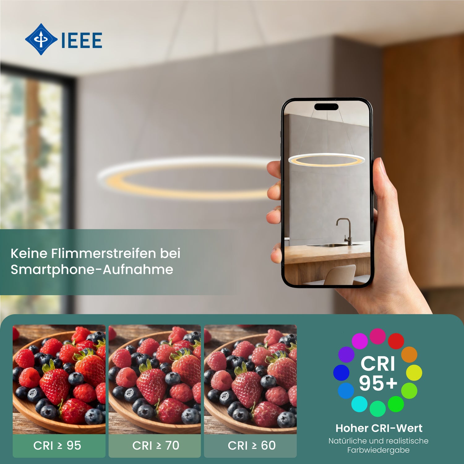 • Angenehm & natürlich: Mit 6570 Lumen flimmerfreiem LED-Licht sorgt diese Hängelampe für eine gleichmäßige, augenschonende Ausleuchtung. Der CRI 80 stellt Farben lebendig und natürlich dar – ideal für Essbereiche, Wohnräume und alle Situationen, in denen Licht nicht blenden, sondern unterstützen soll.