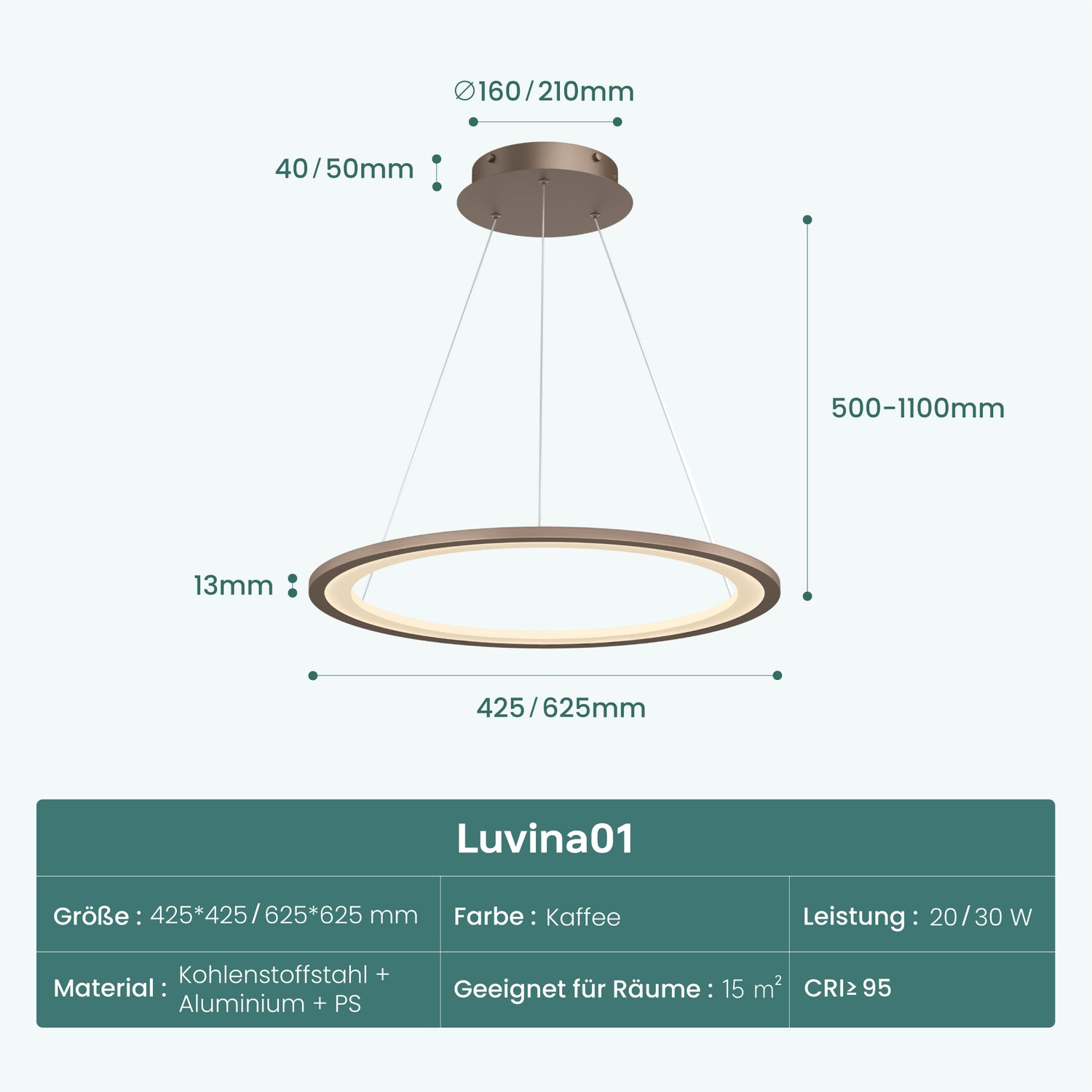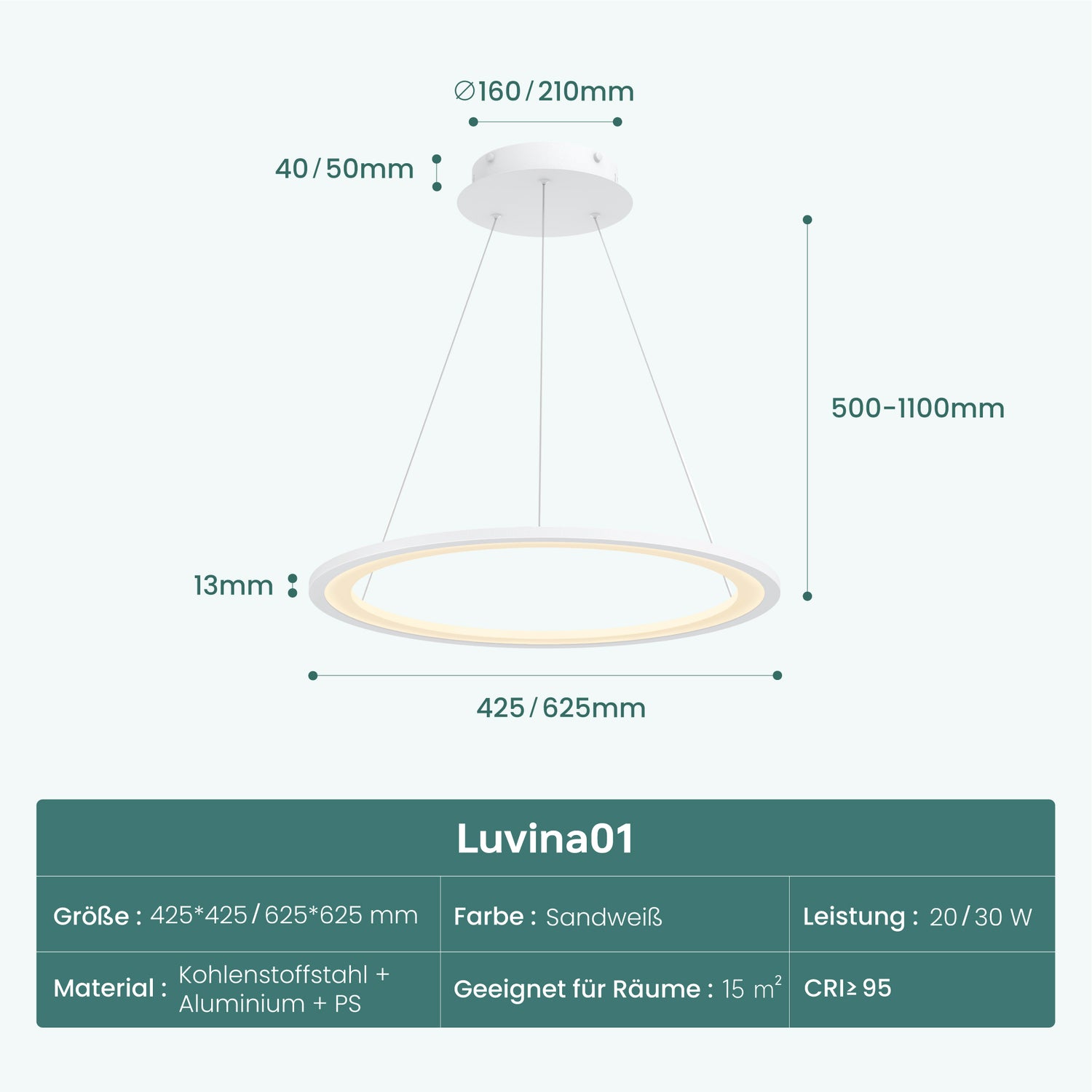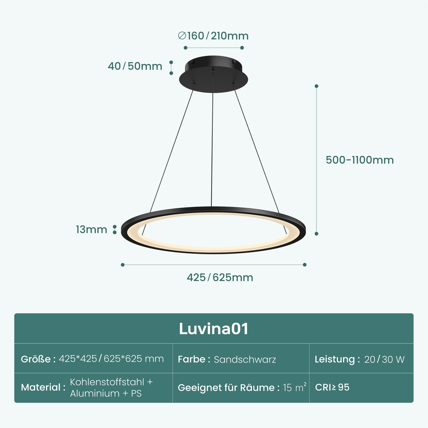 • Flexibel höhenverstellbar: Die Abhängung der Pendelleuchte ist stufenlos zwischen 50 und 100 cm höhenverstellbar. Ideal geeignet für Esstisch, Kücheninsel oder Wohnbereich – die Leuchte lässt sich flexibel an unterschiedliche Raumhöhen und Möbelanordnungen anpassen und fügt sich harmonisch in verschiedene Wohnkonzepte ein.