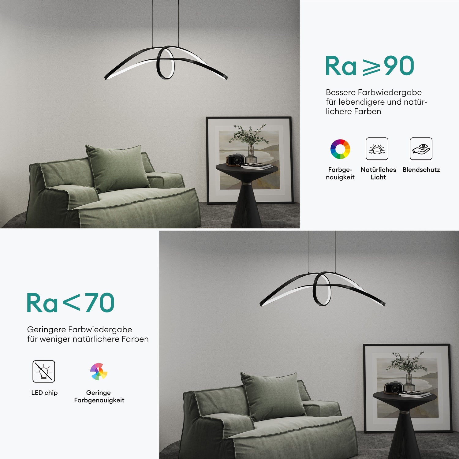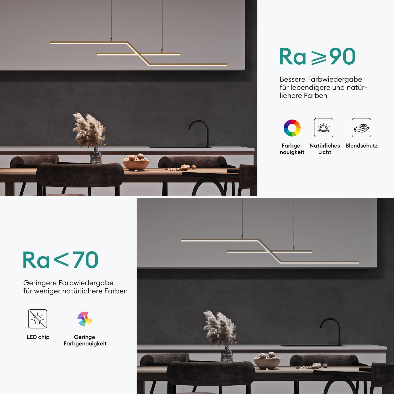 - Le luminaire avec une valeur RA de > 80 fournit un éclairage naturel et authentique qui affiche les couleurs de manière vive et précise.