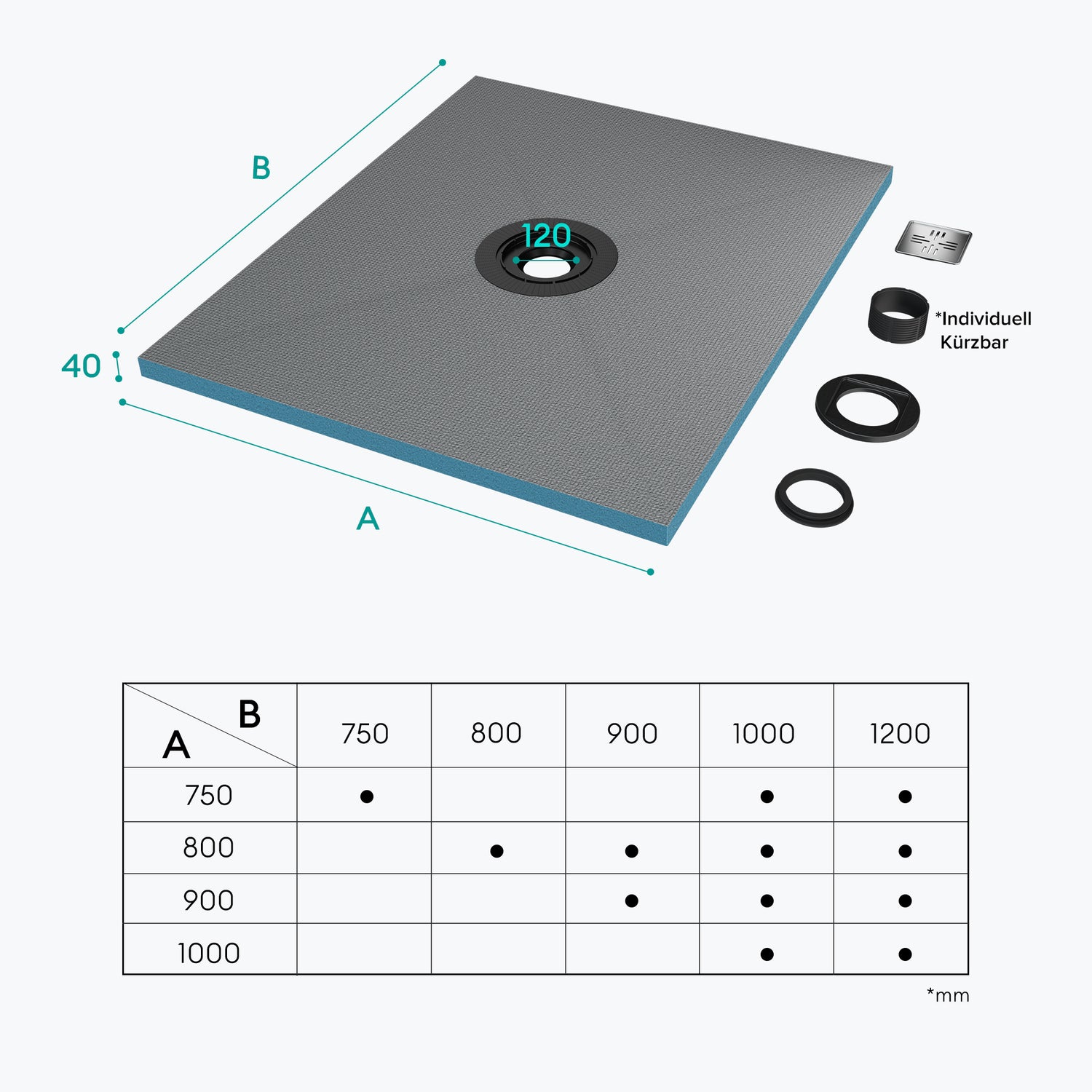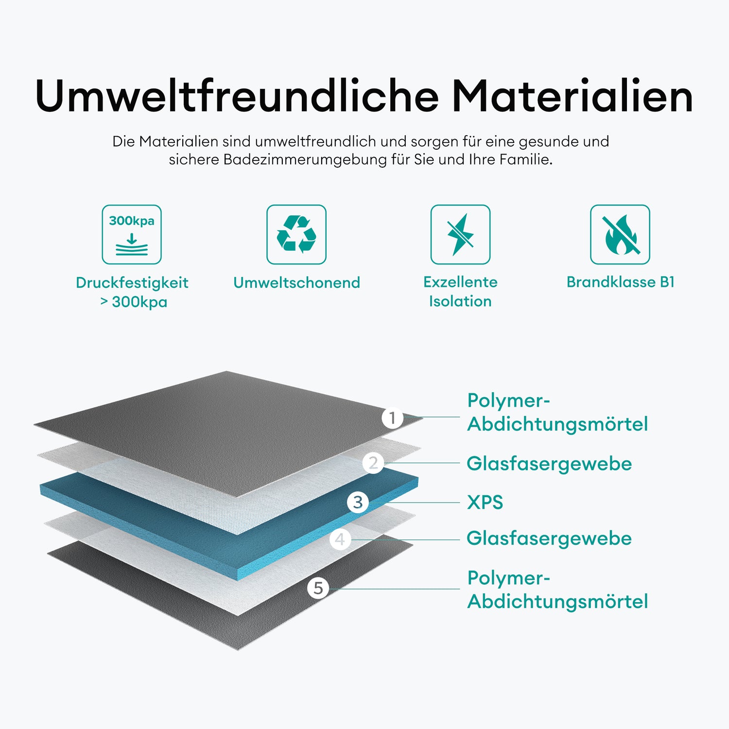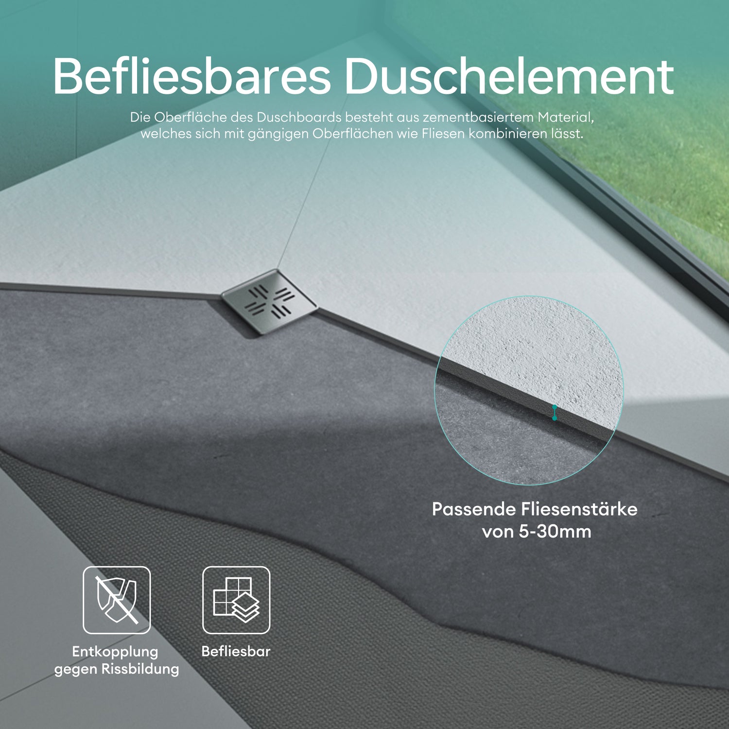 glasvilla Duschelement Duschboard befliesbar Duschelemente mit rinne Duschtasse bodeneben Gefälleplatte XPS