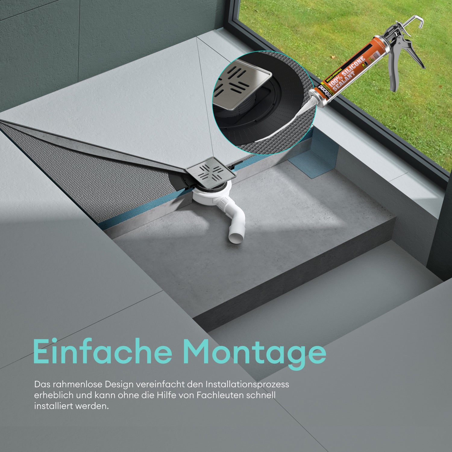 Um eine reibungslose Installation des Duschbodens und eine optimale Nutzung zu gewährleisten, wird empfohlen, das erforderliche Installationszubehör wie wasserdichtes Tuch, Kleber usw. zu kaufen.