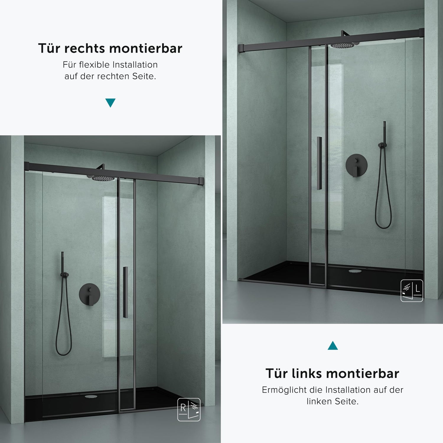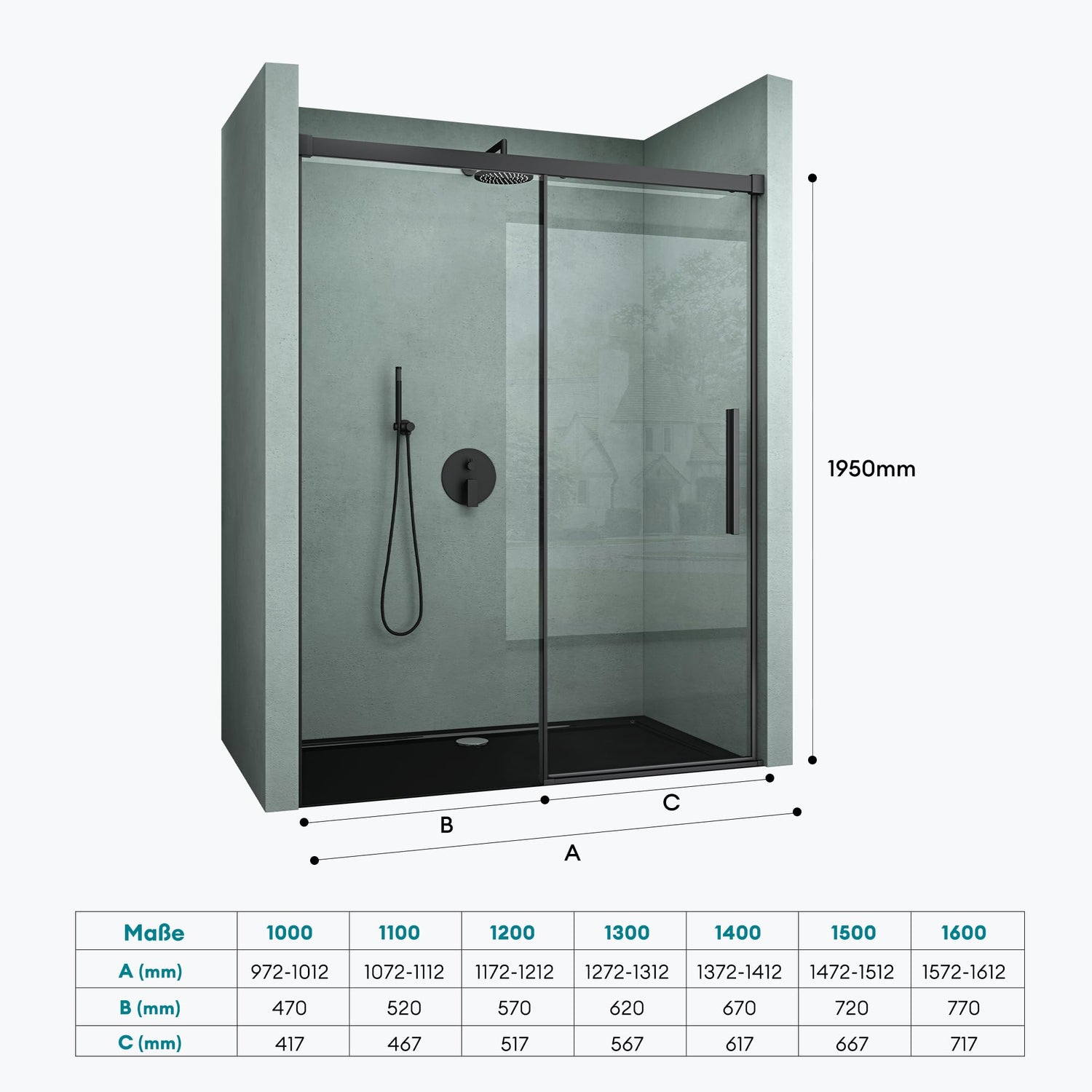 Porte de douche Glasvilla, porte de niche, cloison de douche, cabine de douche, porte coulissante en niche, verre de sécurité ESG de 6 mm, fermeture amortie incluse, Teramo12K