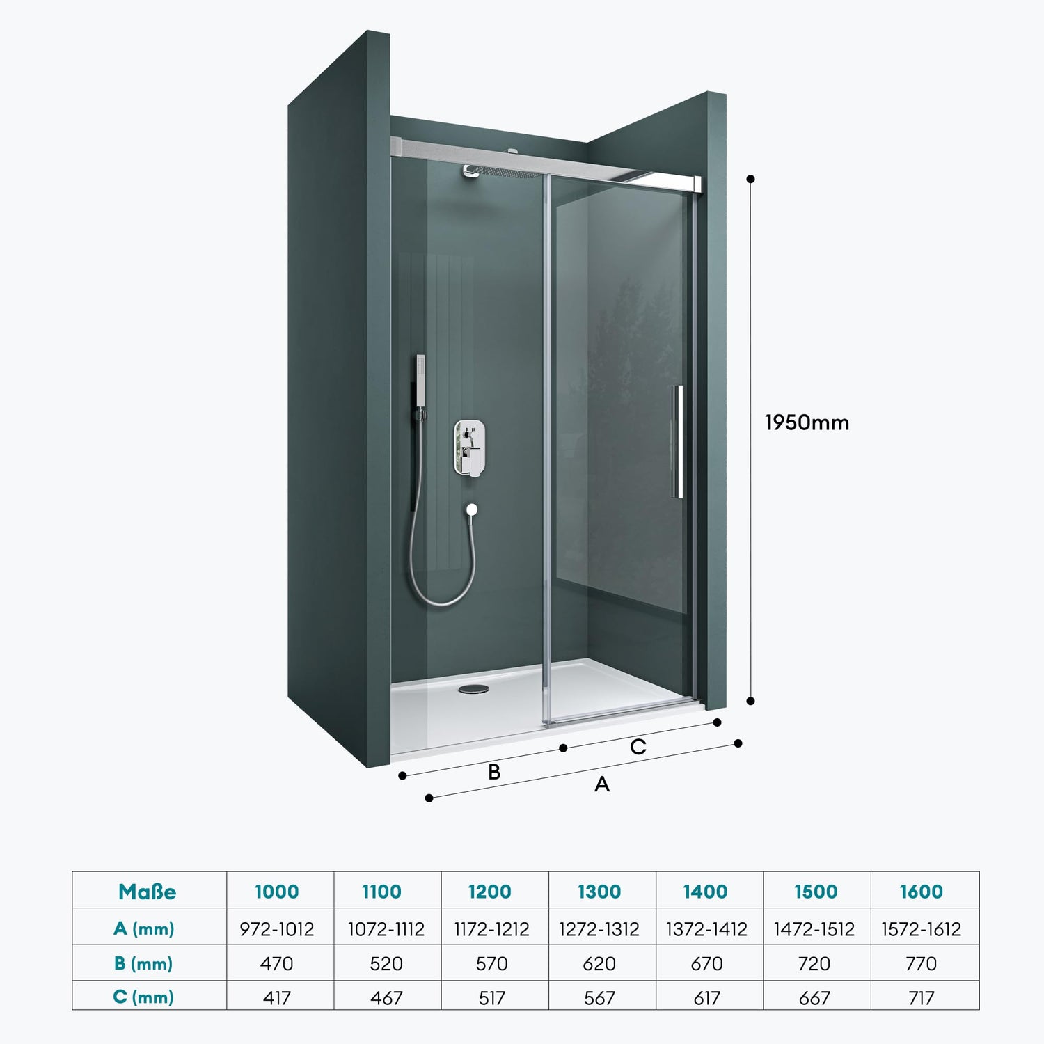 Porte de douche Glasvilla, porte de niche, cloison de douche, cabine de douche, porte coulissante en niche, verre de sécurité ESG de 6 mm, fermeture amortie incluse, Teramo12K - 100×195cm / chrome est en rupture de stock et sera expédié dès qu’il sera de retour en stock.