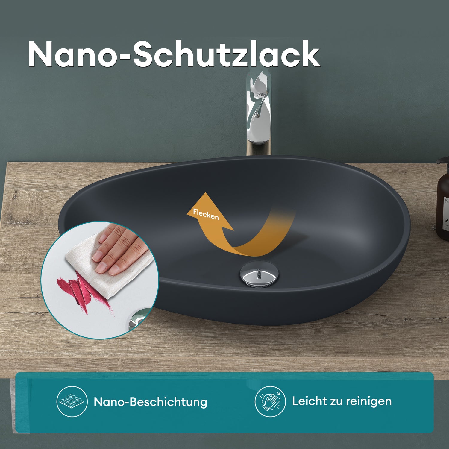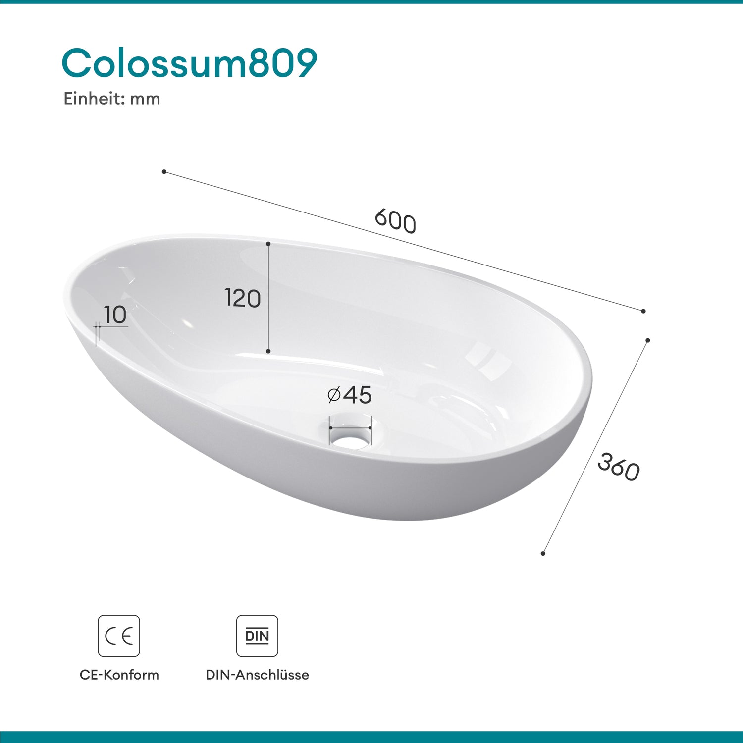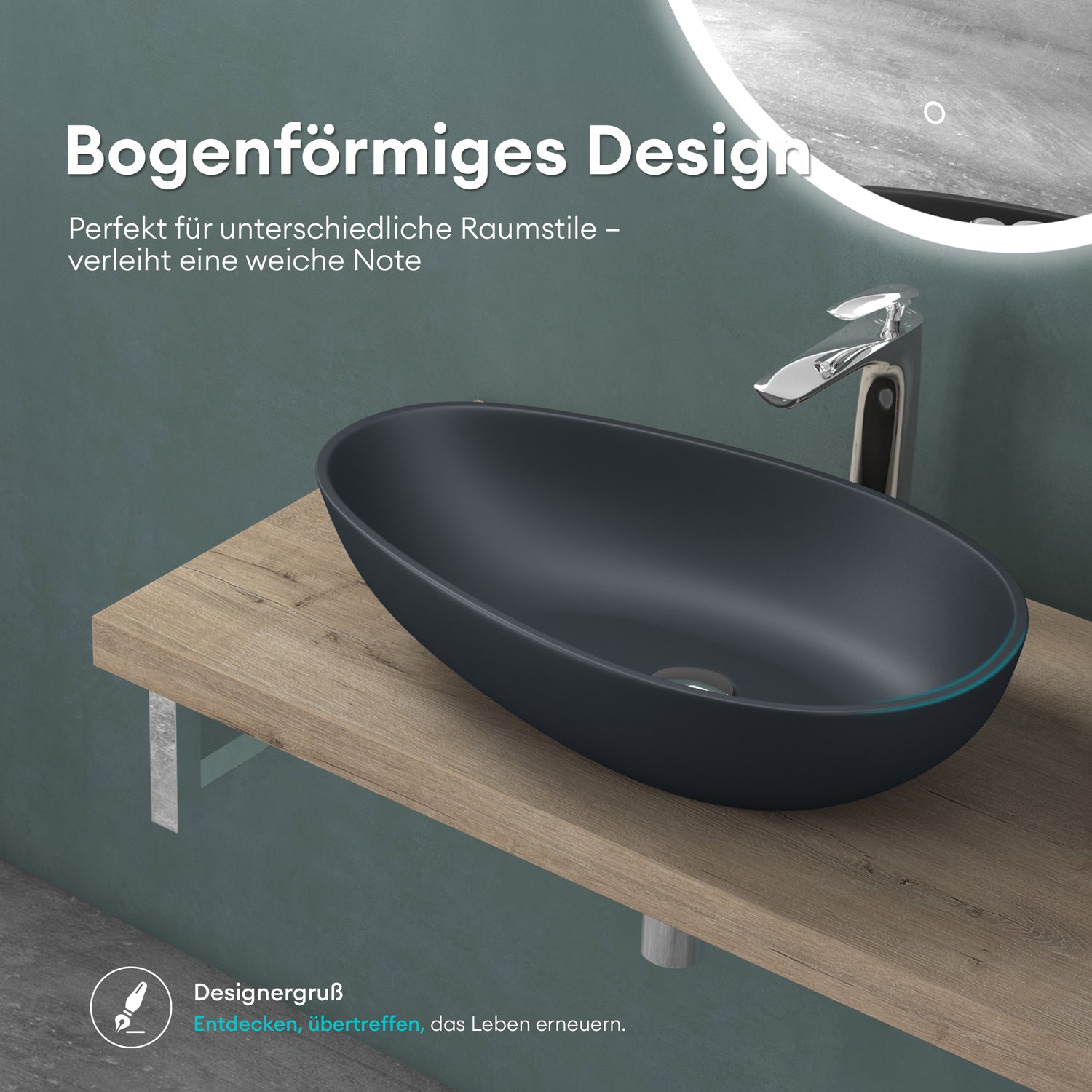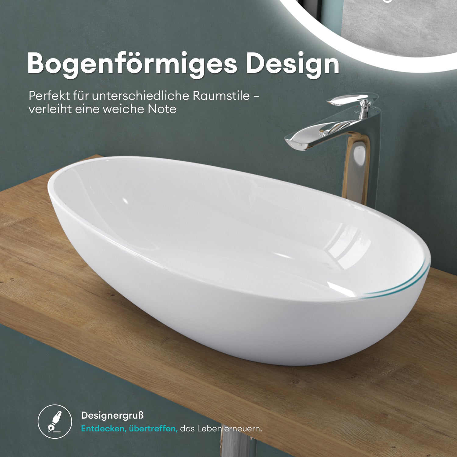 glasvilla Waschbecken oval Aufsatzwaschbecken ohne Hahnloch und Überlauf Col809