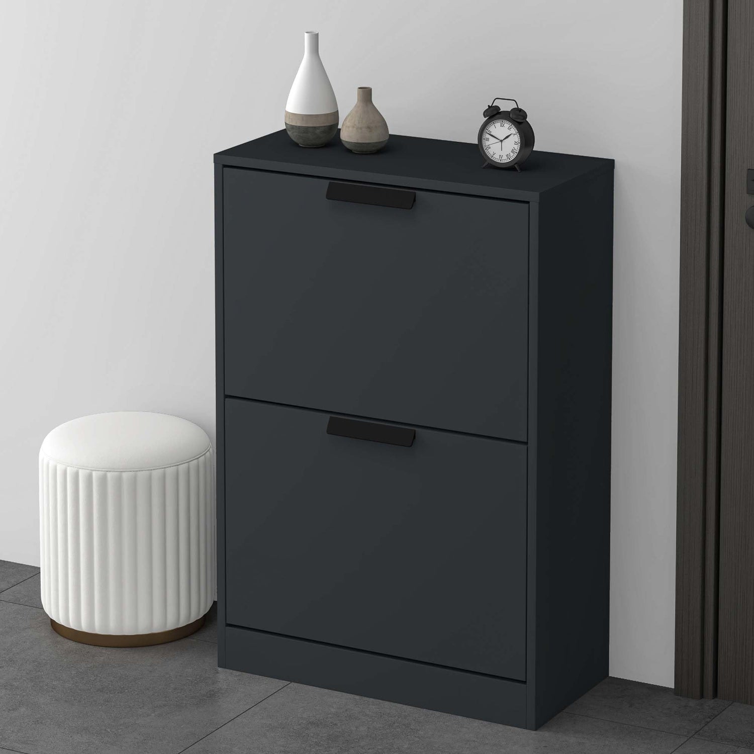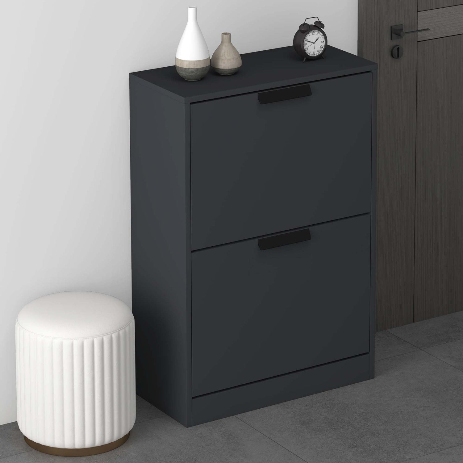 - Rangement pratique : L'armoire à chaussures peut accueillir plusieurs paires de chaussures à la fois. Elle est composée de deux niveaux avec deux compartiments à chaque niveau, répondant parfaitement à vos besoins de rangement.