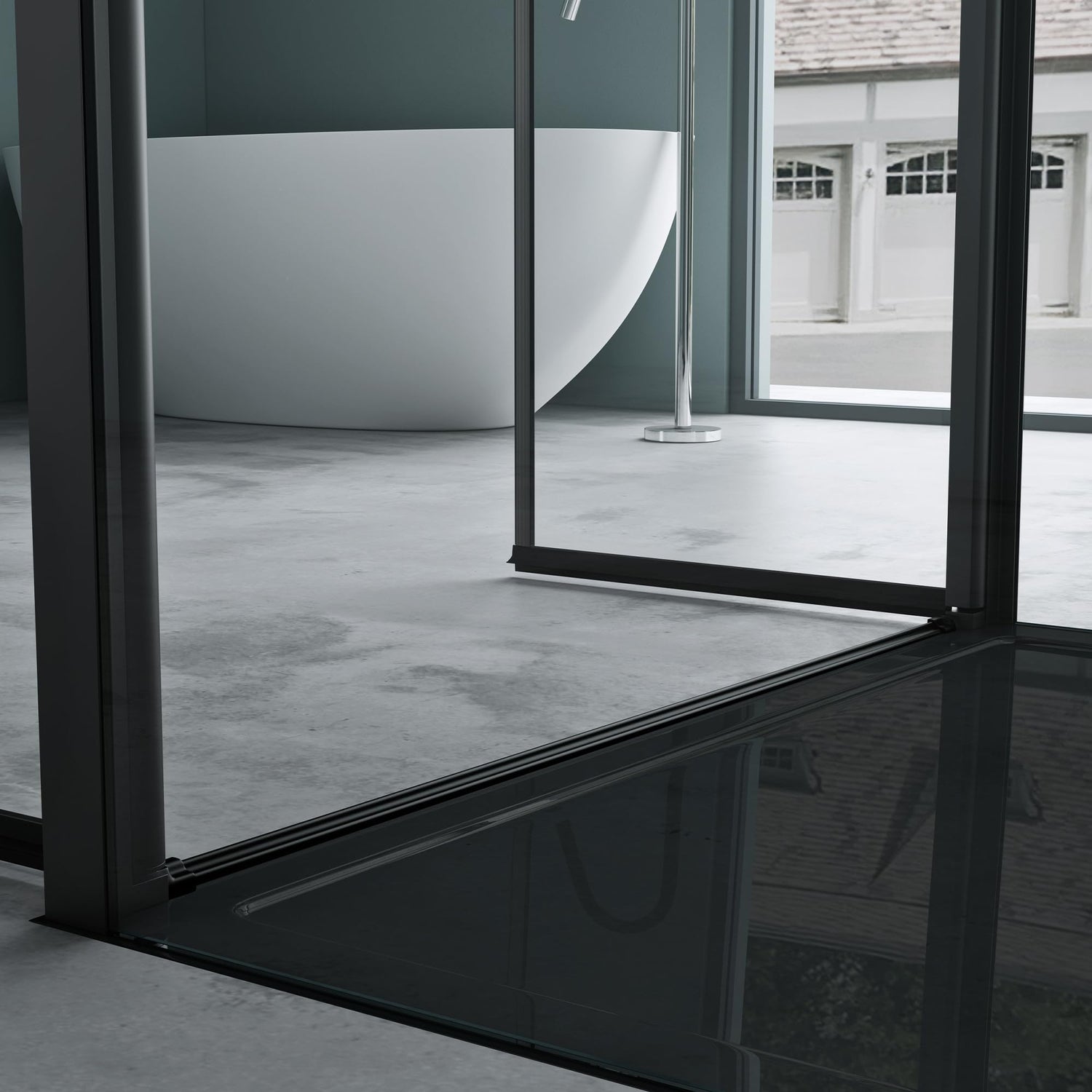 Cabine de douche Glasvilla, cloison de douche en U, cadre en aluminium, verre de sécurité ESG, verre transparent, double porte noire Ravenna66UK