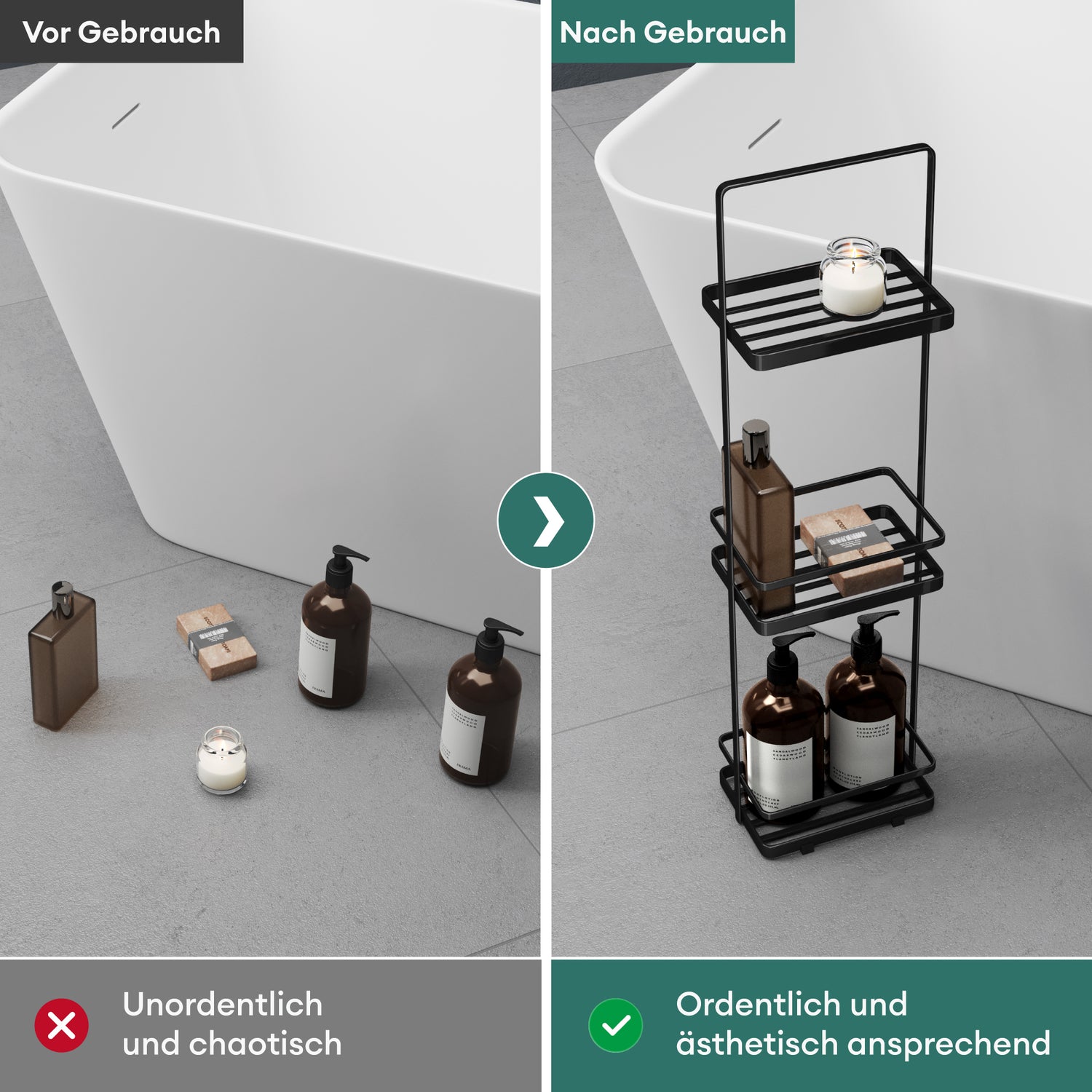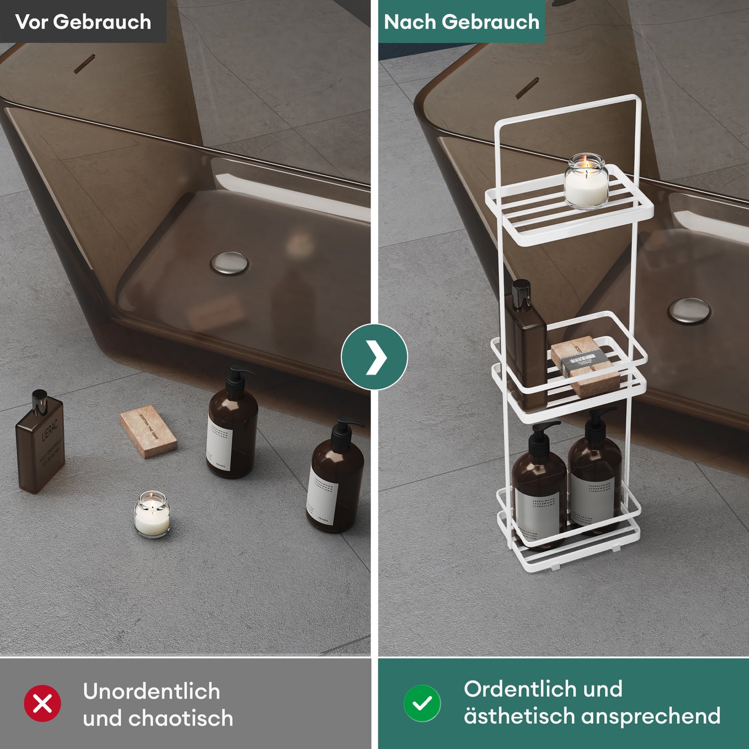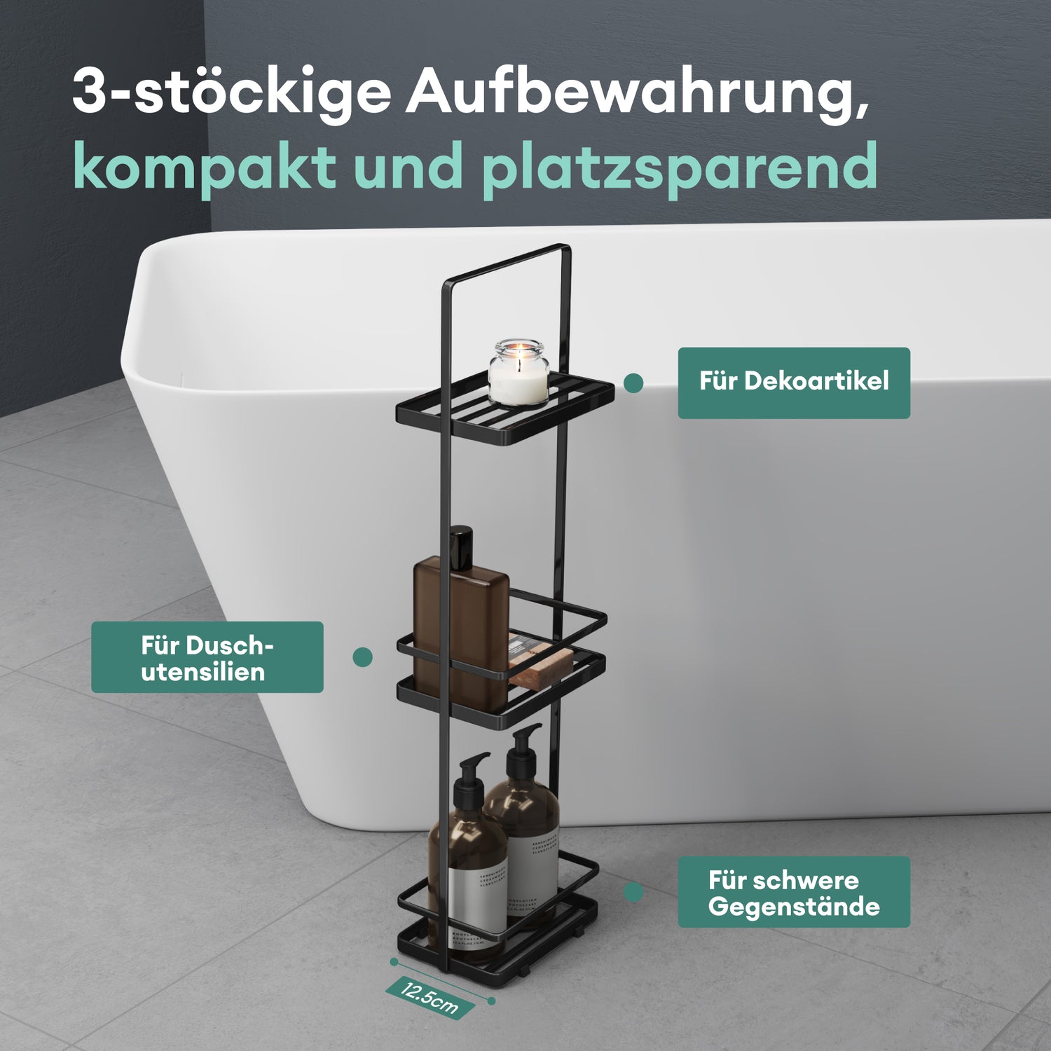 • Mehrlagig mit Ablagen: Mit 3 Ebenen bietet dieses Badezimmerregal reichlich Stauraum für Kosmetik, Dekoartikel oder Duschutensilien – für ein perfekt organisiertes Bad