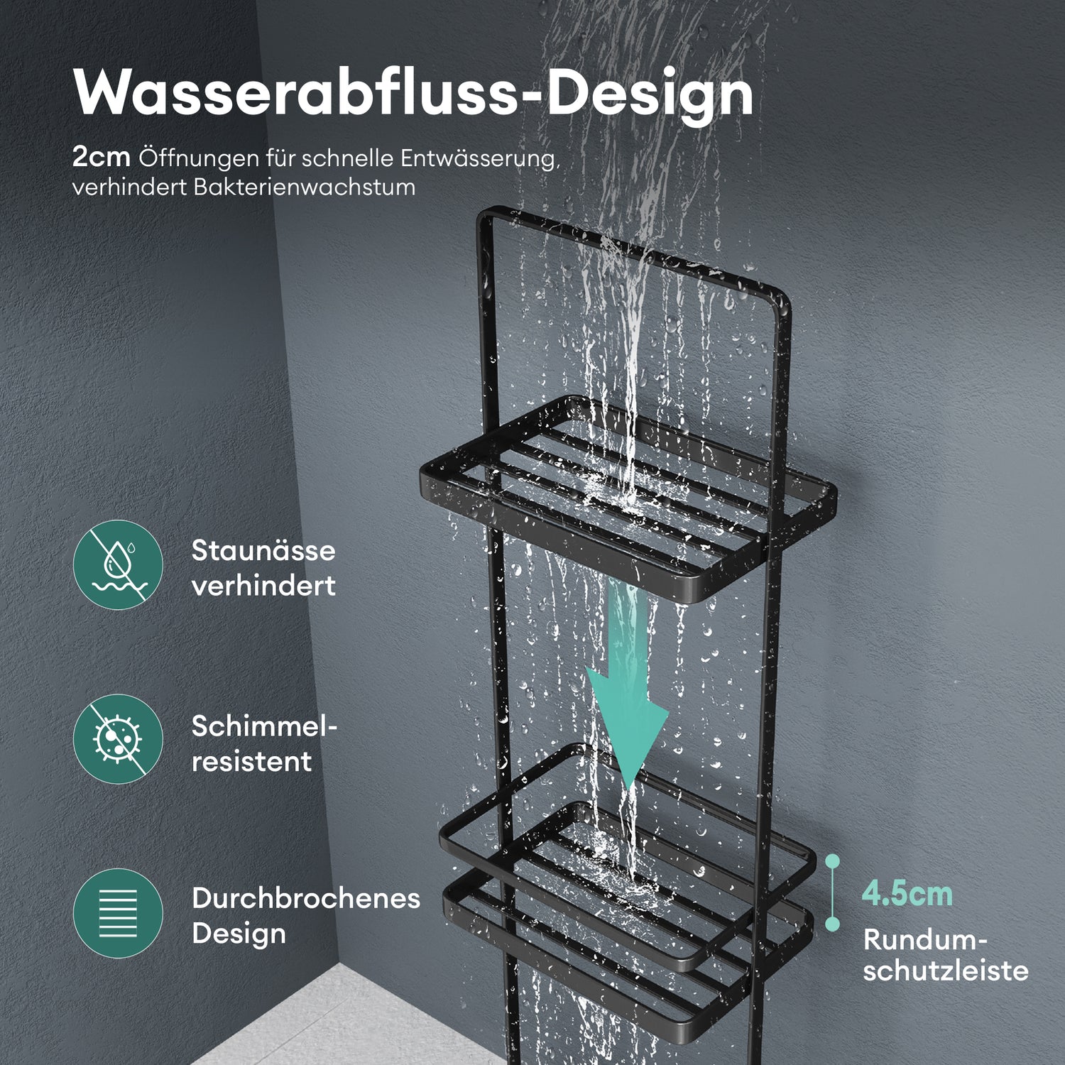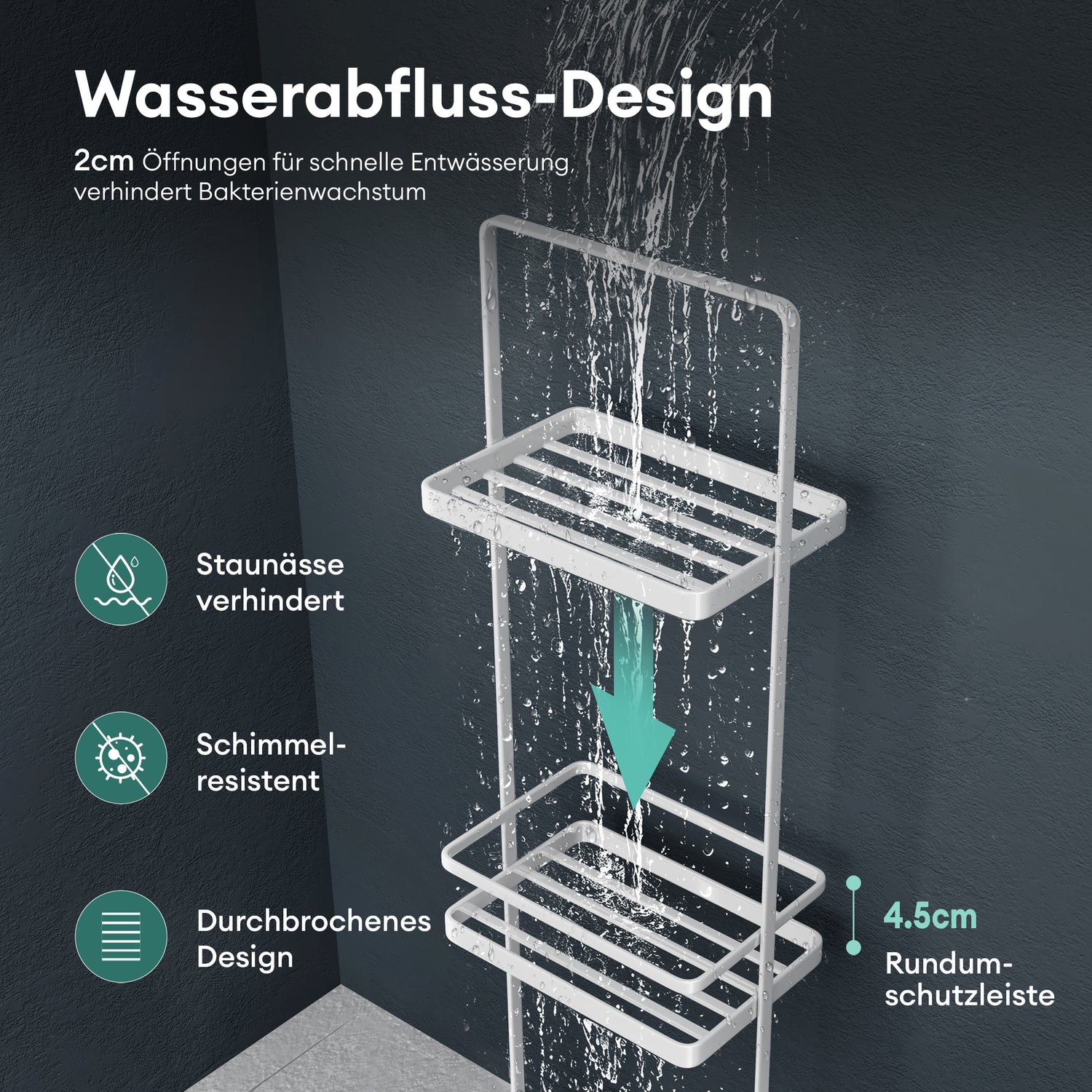 • Wasserabfluss-Design: 2 cm Öffnungen für schnelle Entwässerung, verhindern das Bakterienwachstum