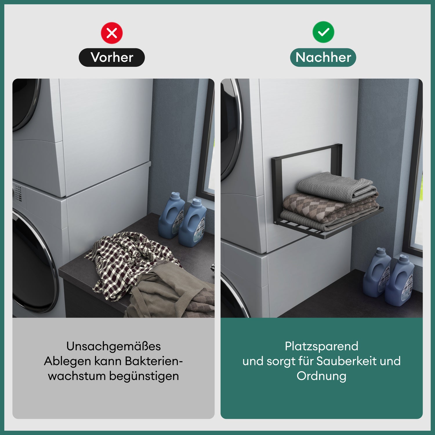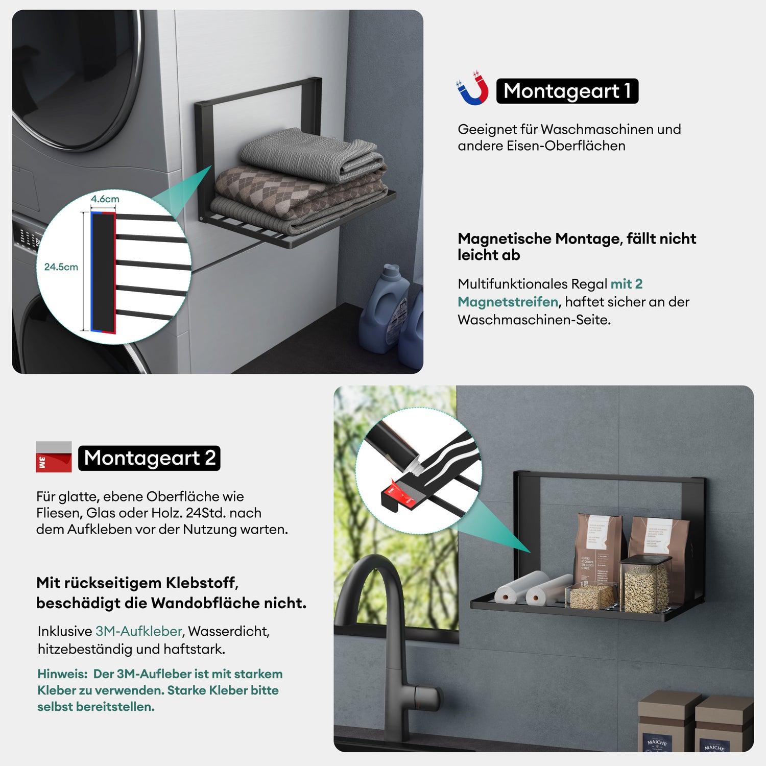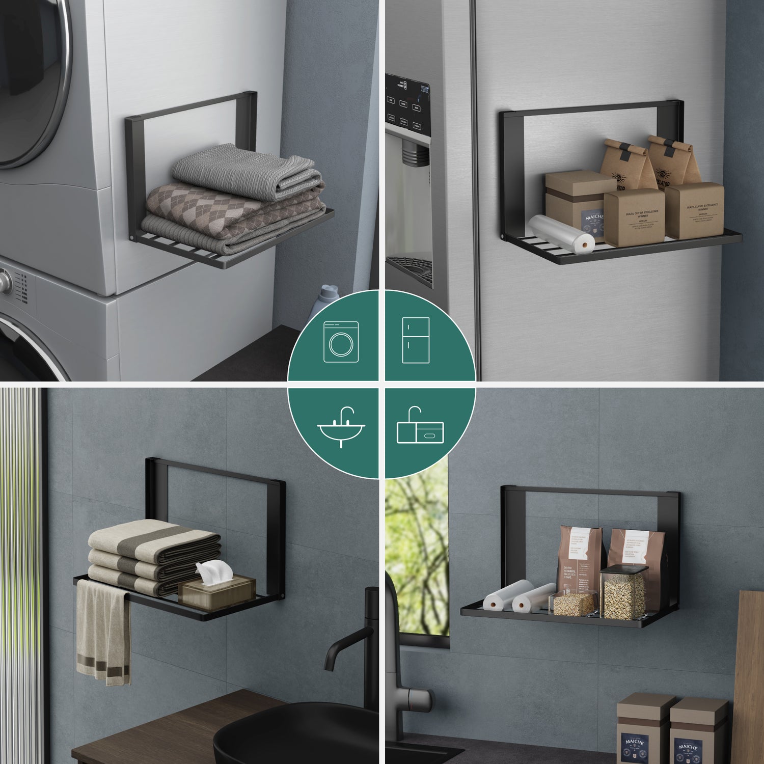 glasvolla Handtuchhalter Badetuchhalter Magnetische Regale für Waschmaschine Klappregal Wandregal ohne Bohren 41x25cm Multifunktionaler Regal für Kühlschrankseit, Bad, Küche Folda-01 - Matt Schwarz ist auf Lager und wird versandt, sobald es wieder verfügbar ist
