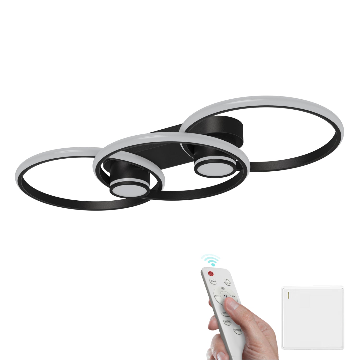 Glasvilla Design – Lámpara de techo LED negra con mando a distancia, regulable 3000–6400K (70W, 75 cm)