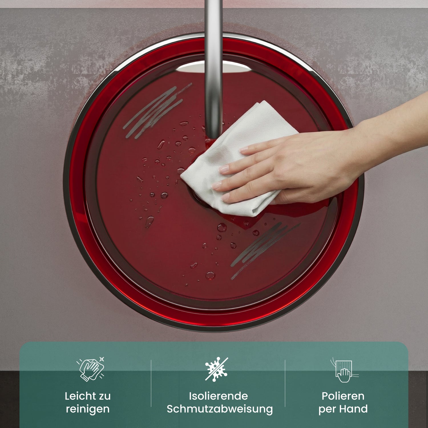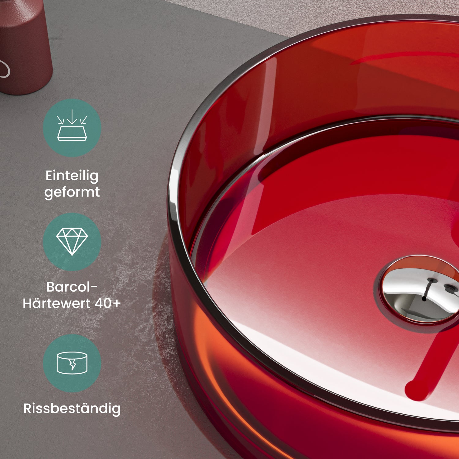 glasvilla Lavabo da Appoggio in Resina, Lavabo da Bagno senza Foro Rubinetto e Troppopieno, Coloria01 - Rosso ...è stato ordinato al fornitore e verrà spedito non appena sarà di nuovo disponibile.