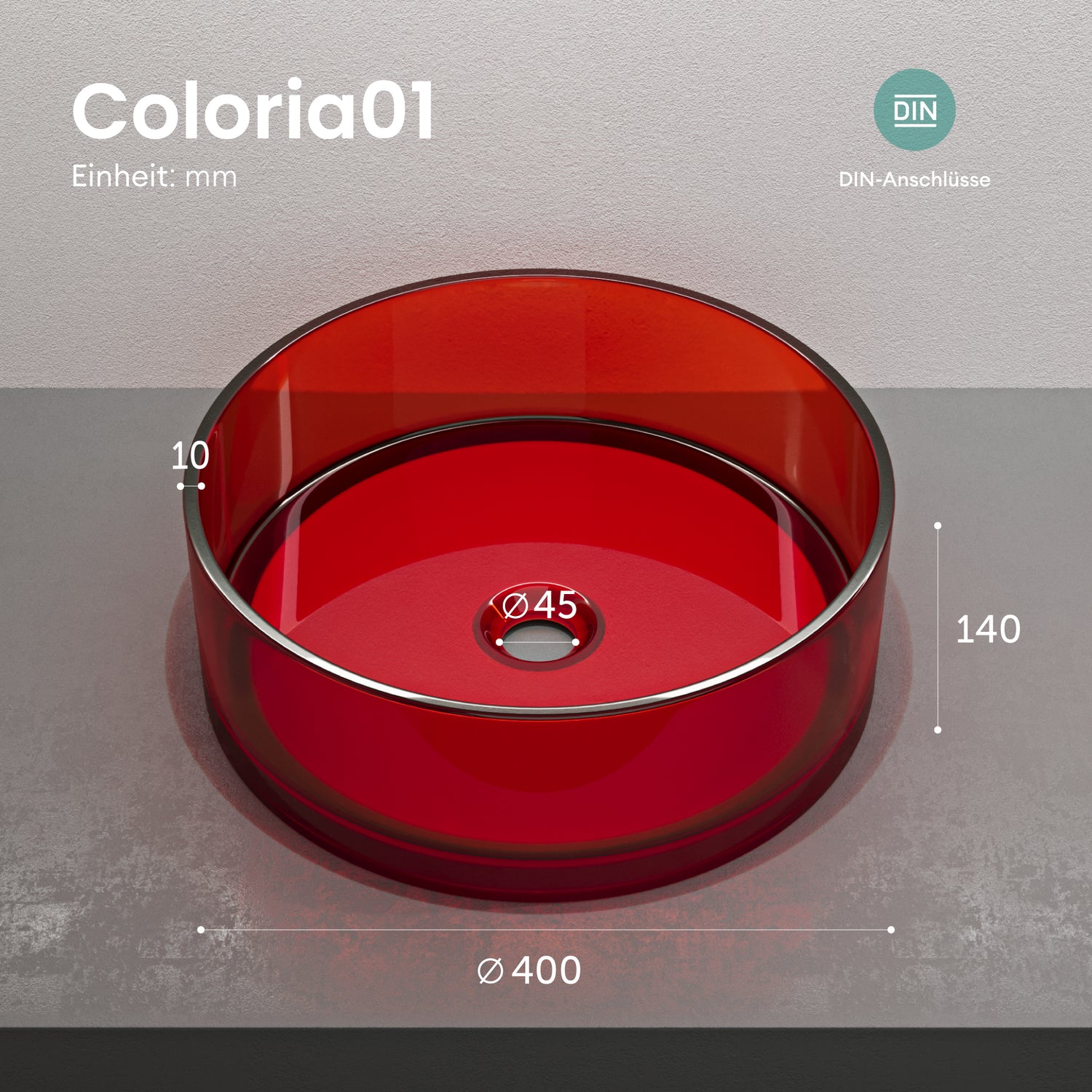Lavabo in resina Coloria01 | Senza foro per rubinetto | Attacchi DIN