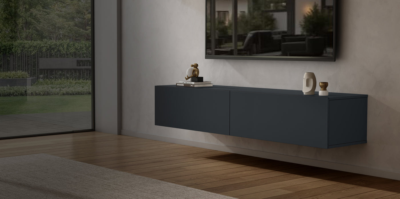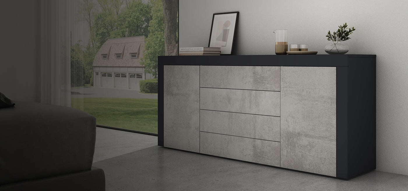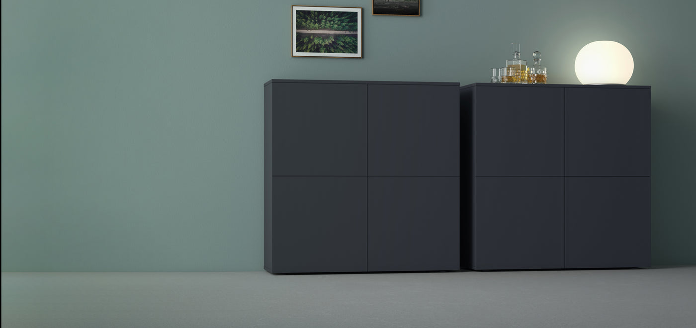 Mobiletto da 160 cm con due cassetti. Spazio semi-aperto per riporre in modo mirato gli oggetti di uso quotidiano, organizzato in modo logico e facile da usare.