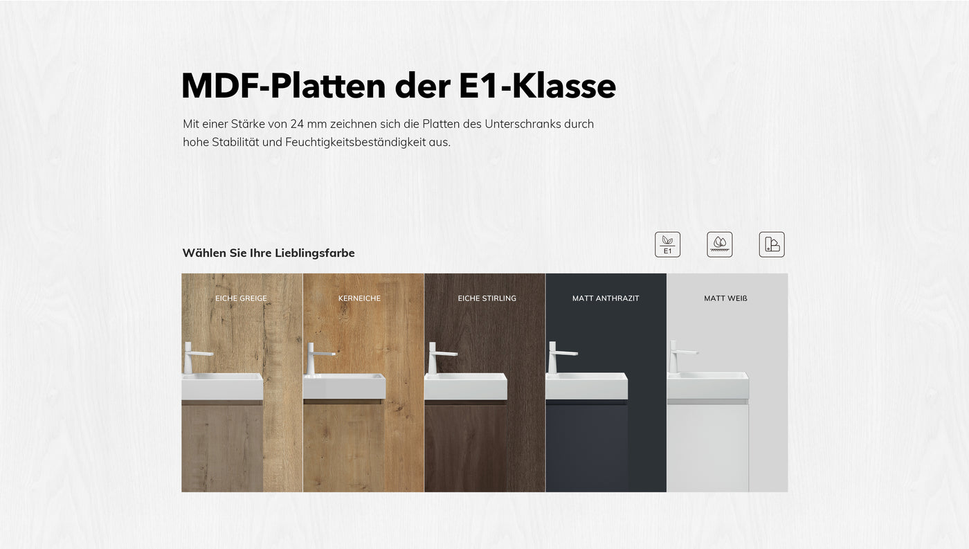 Le dimensioni compatte del set di mobili da bagno, tenendo conto del design e della funzionalità, sono ideali per bagni per gli ospiti o piccoli appartamenti.