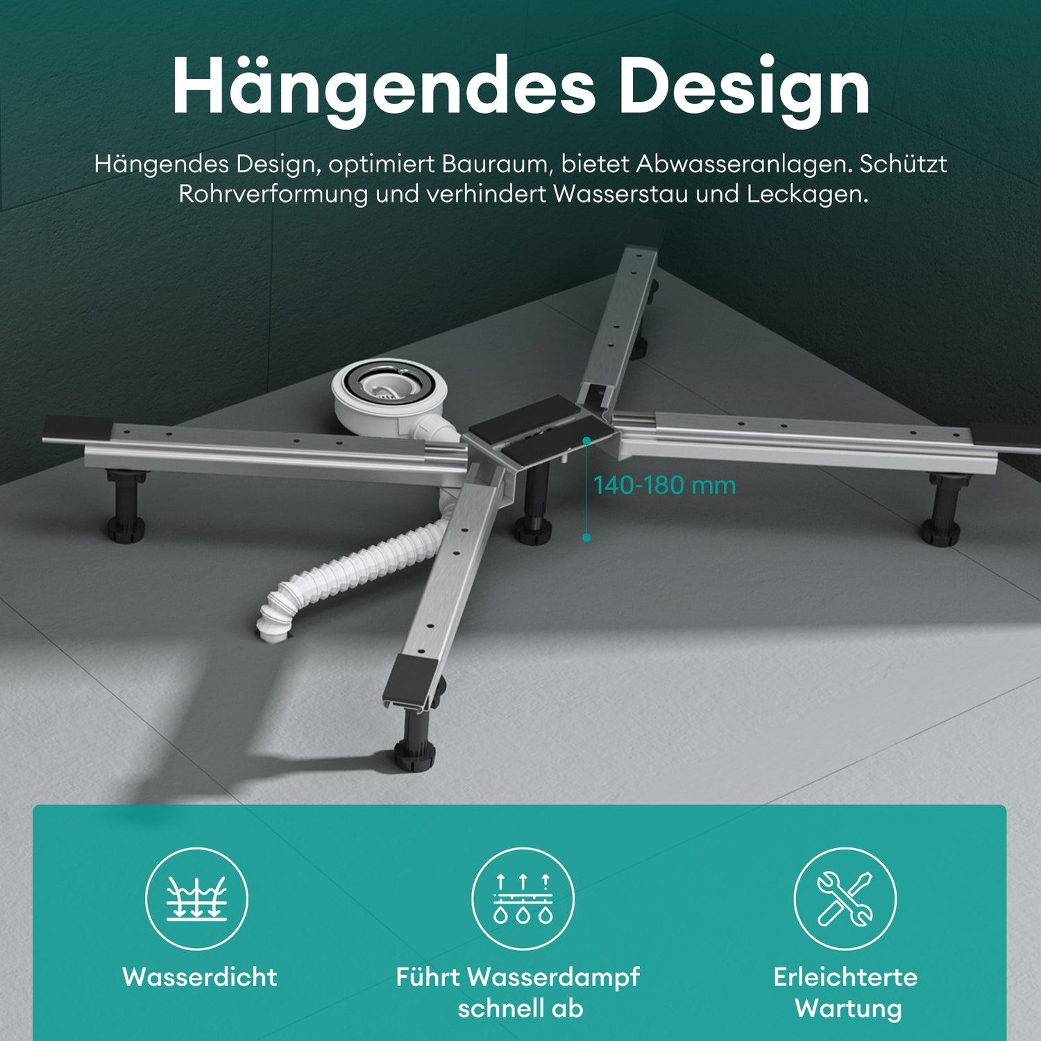 - Stärkere Tragkraft: X-förmige Konstruktion mit 5 Stellfüßen sorgt für gleichmäßige Lastverteilung und verhindert Verformungen. Rutschfest und stabil – für sicheres Duschen