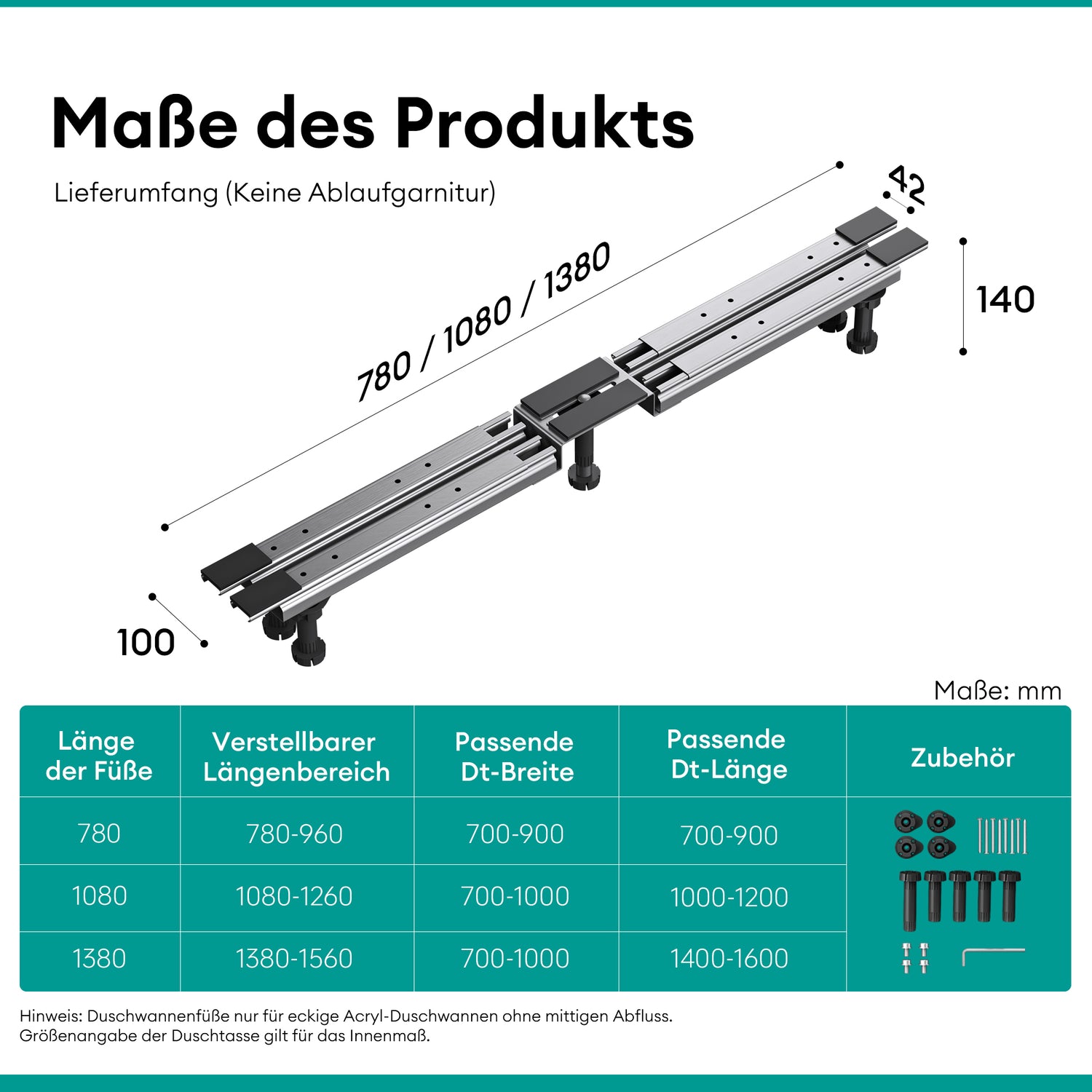 - Spurenlose & wartungsfreundliche Montage: Duschwannenfüße mit bohrfreier Montage schützen Dekoration, Wände und Böden, eignen sich ideal für Renovierungen ältere Wohnungen. Der Lieferumfang umfasst Zubehör und Montageanleitung, die Installation ist besonders einfach