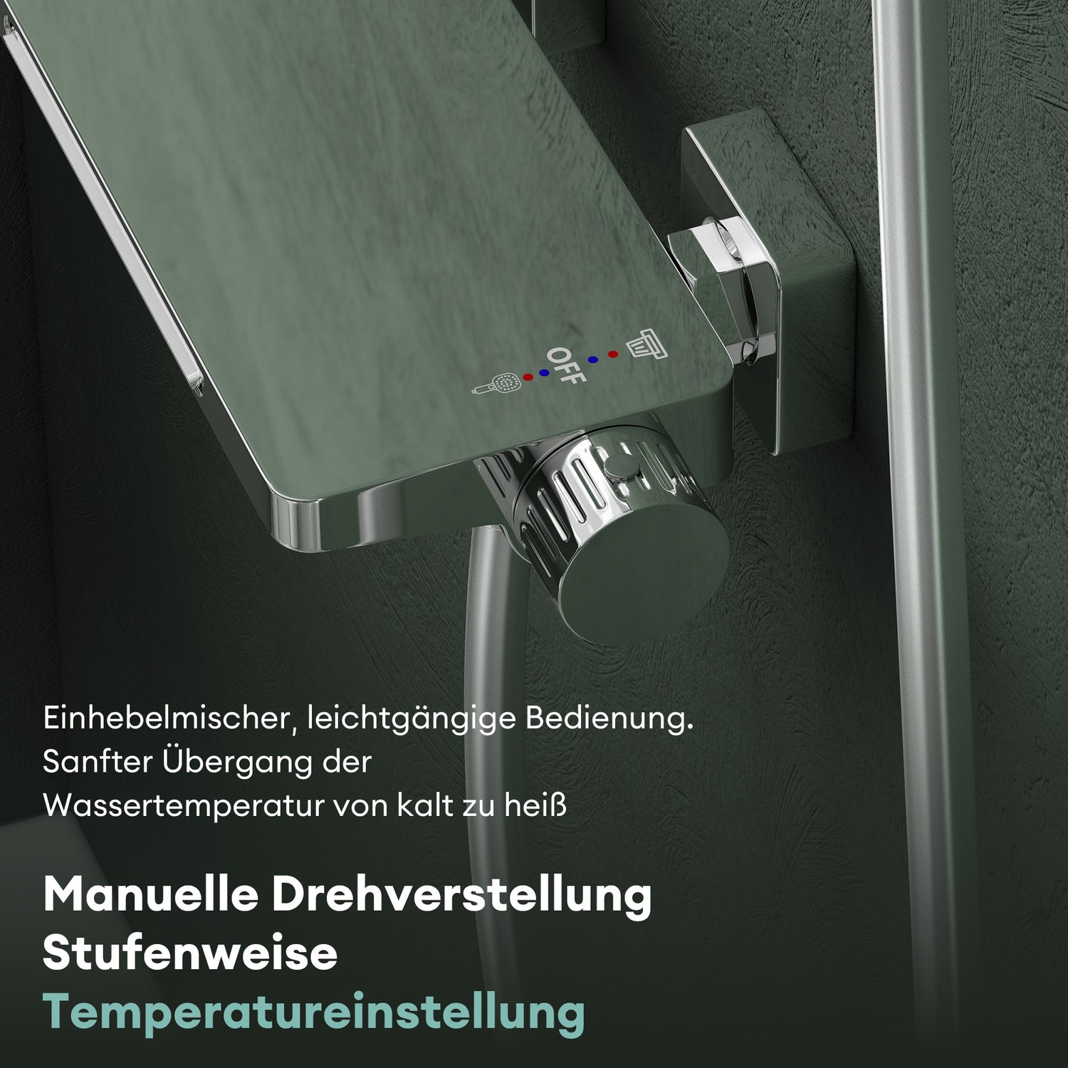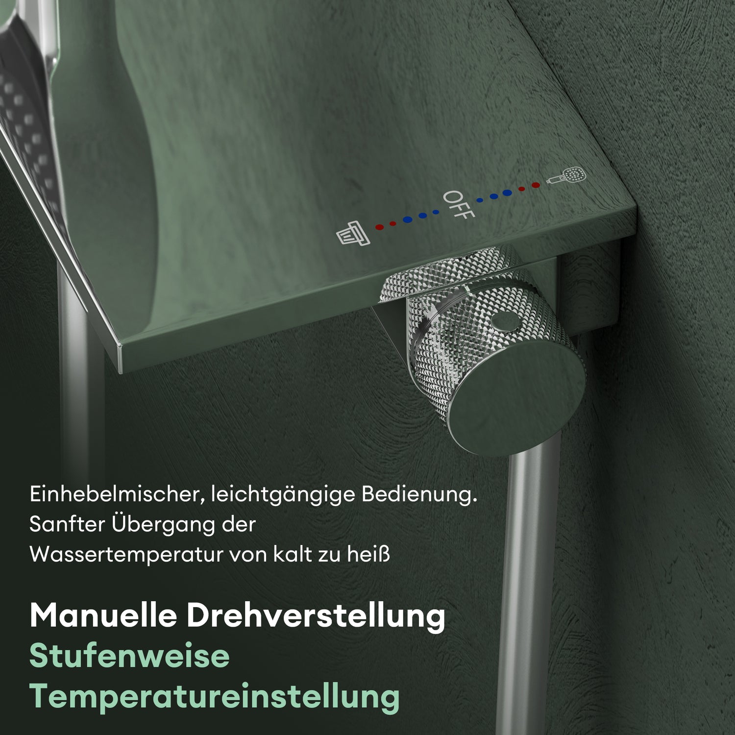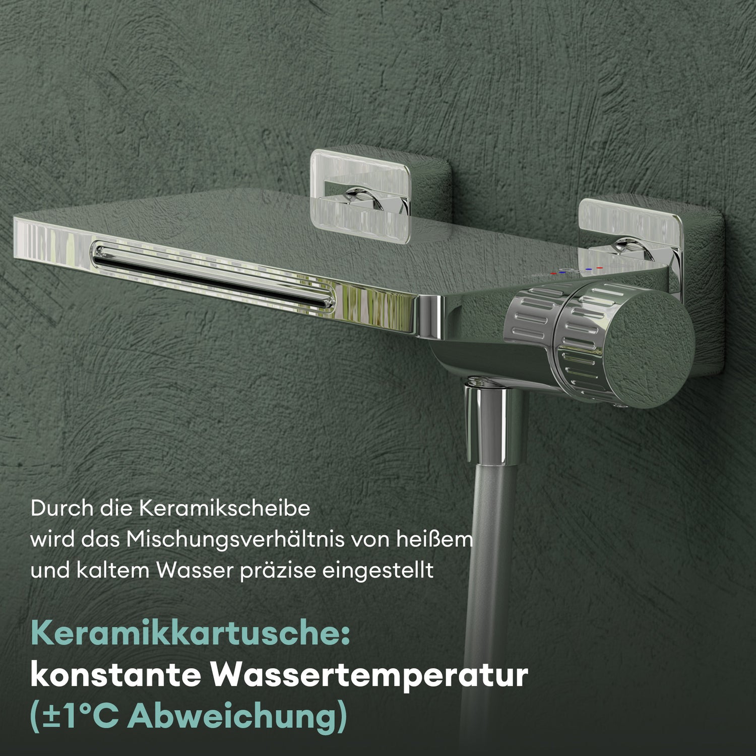 - Präzise Temperaturkontrolle: Manuelle Drehverstellung mit stufenweiser Temperatureinstellung – die hochwertige Keramikscheibe sorgt für eine präzise Mischung von heißem und kaltem Wasser