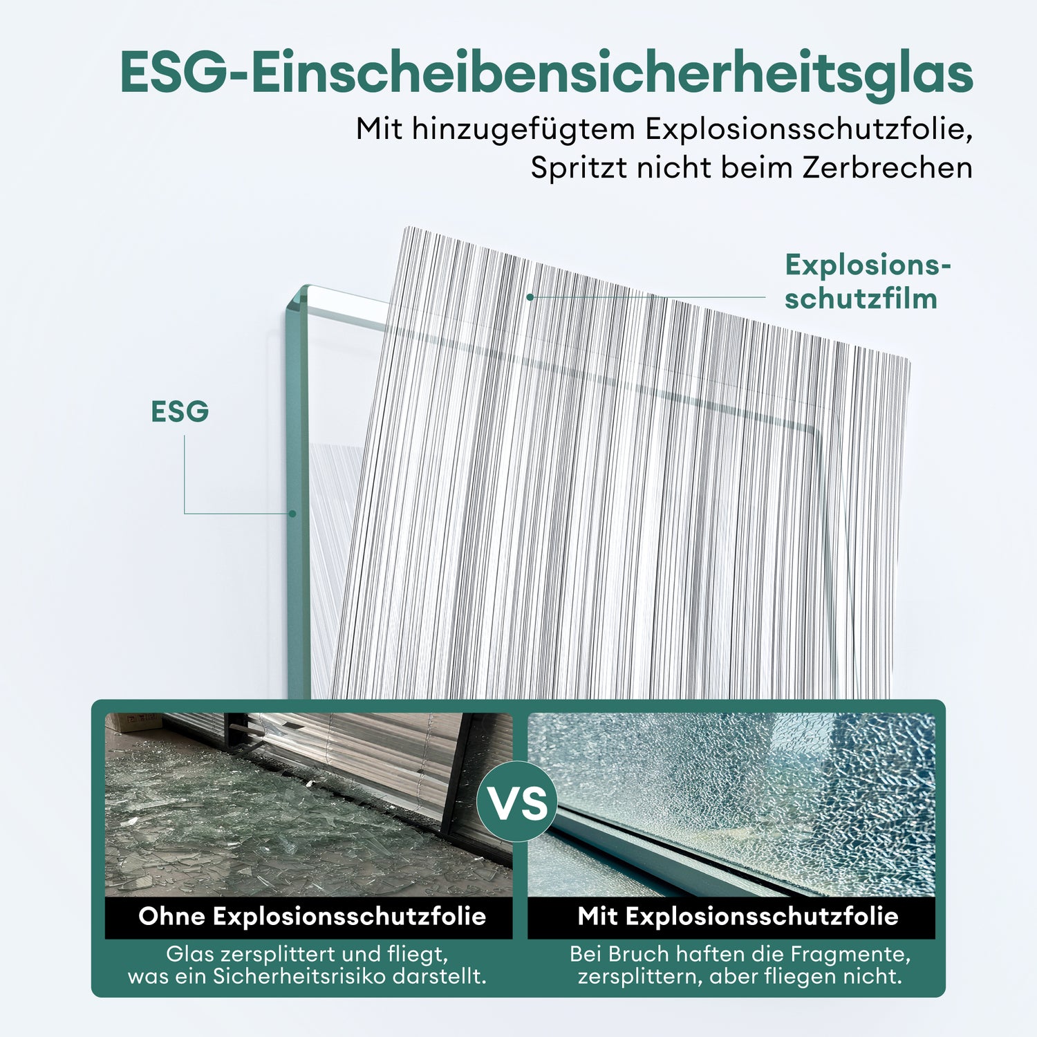 - Installation facile : Couleur du verre : Verre brossé ; Couleur du profilé mural : Noir mat. Tous les accessoires nécessaires et les instructions d’installation sont inclus pour une pose simple.