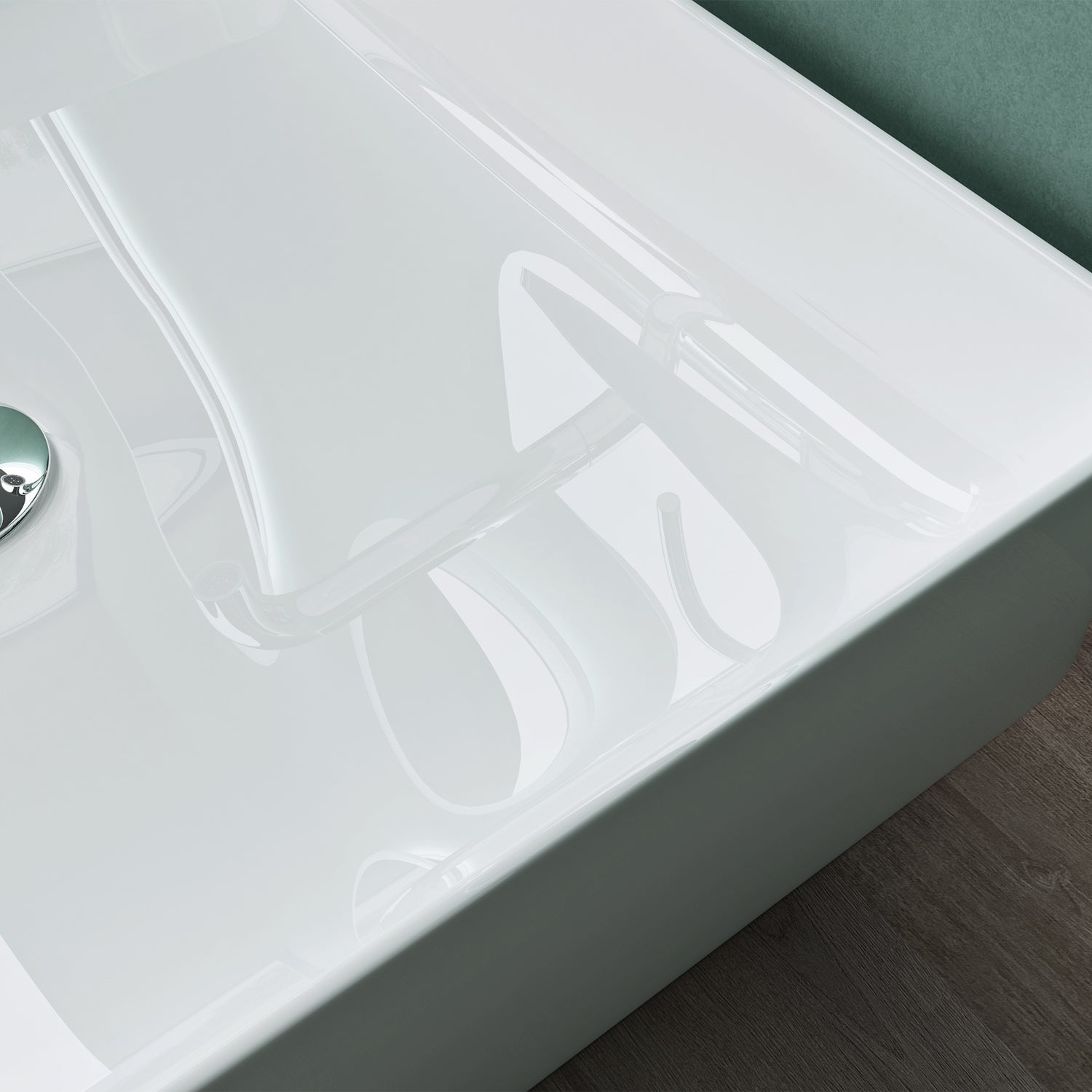 Das Design ist sehr schlicht, das gradlinige Design ist momentan sehr gefragt und somit sind Sie mit diesem Waschbecken auf der sicheren Seite.