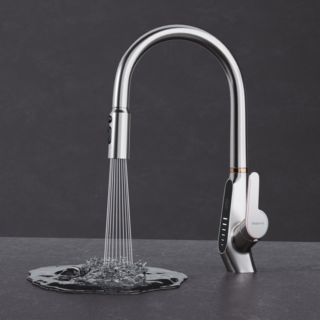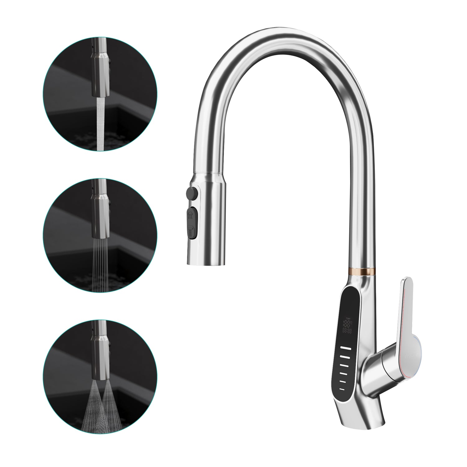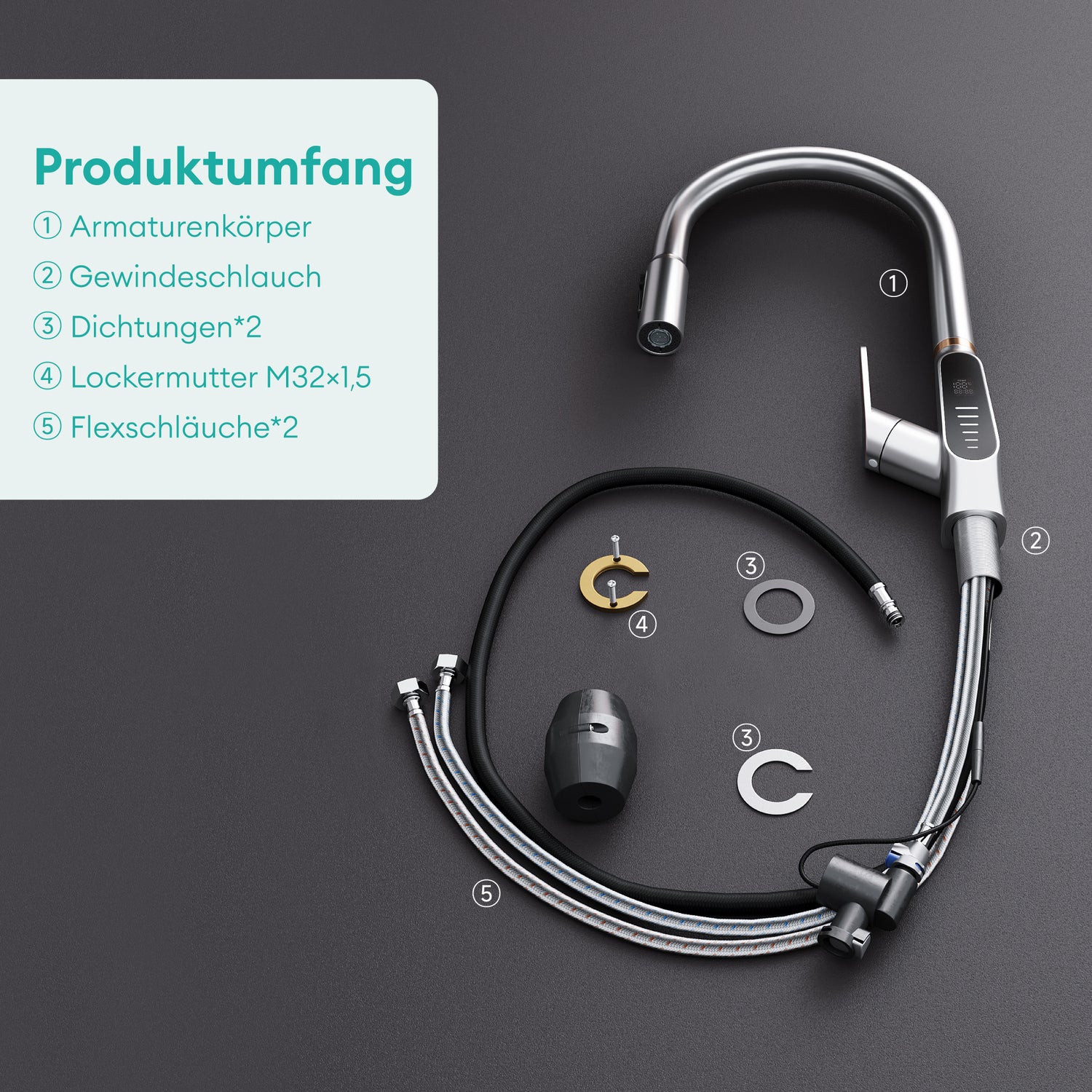 glasvilla Wasserhahn Küche Küchenamatur ausziehbar 360° drehbar 3 Wasserstrahl-Modi LED-Digitalanzeige Küchenwasserhahn Spültischarmatur MS-8085 - Silber est en rupture de stock et sera expédié dès qu’il sera de retour en stock.