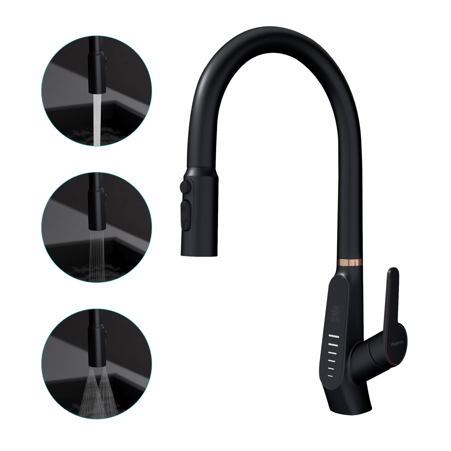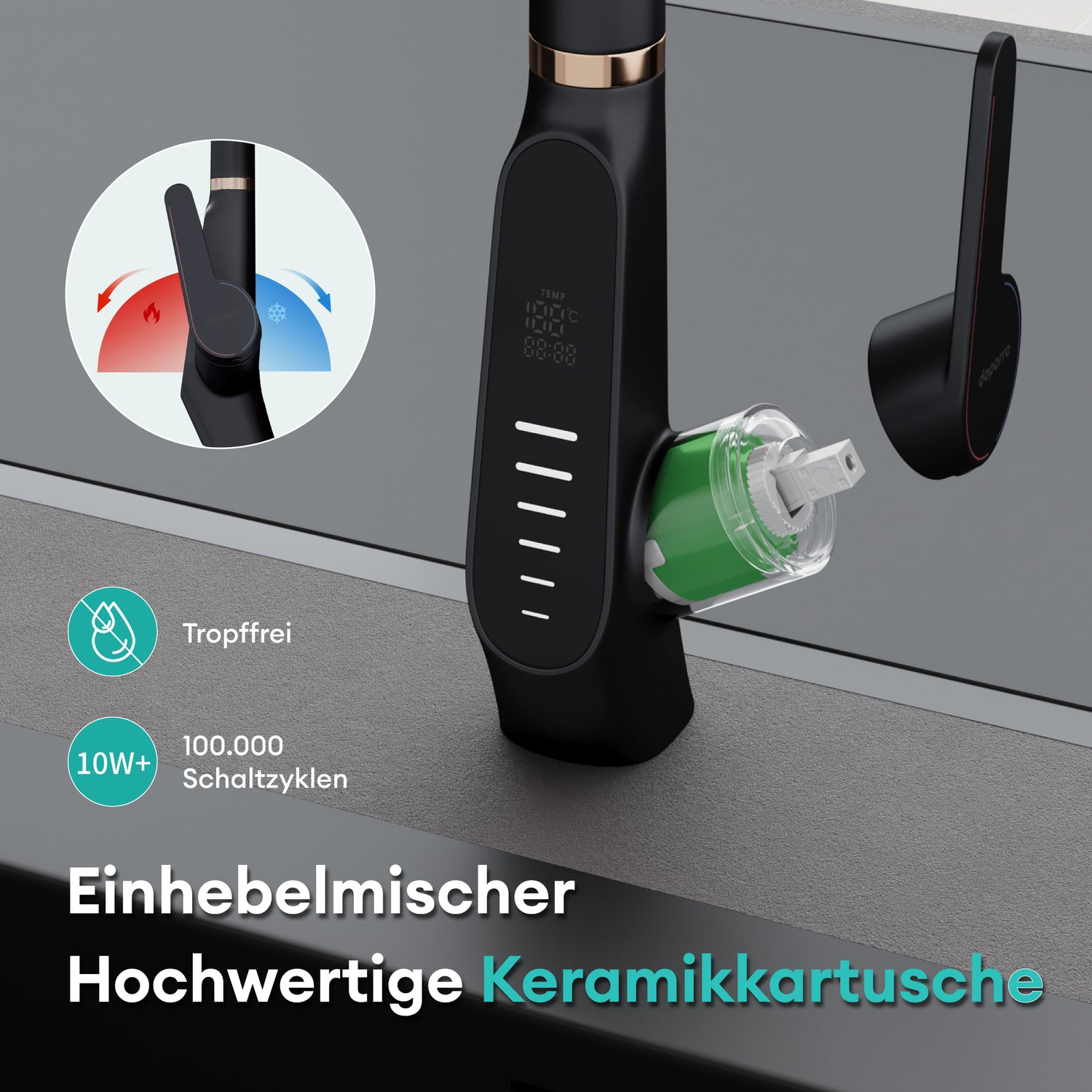 glasvilla Wasserhahn Küche Küchenamatur ausziehbar 360° drehbar 3 Wasserstrahl-Modi LED-Digitalanzeige Küchenwasserhahn Spültischarmatur MS-8085