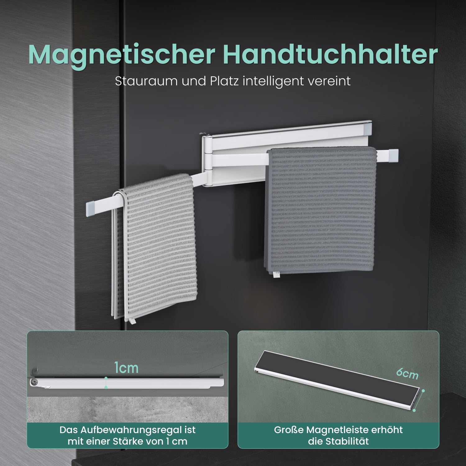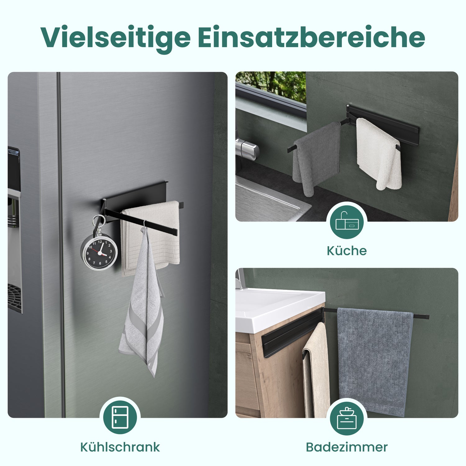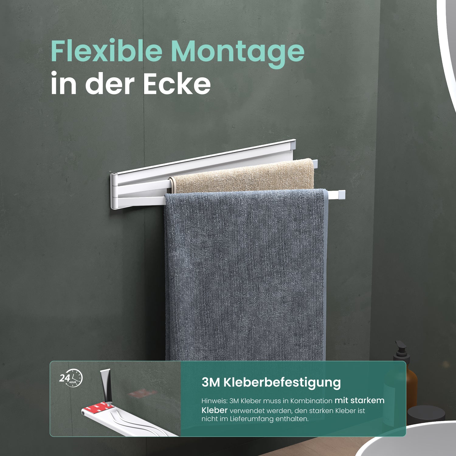 glasvolla Handtuchhalter ohne Bohren, 180° schwenkbar mit 3 Armen, Handtuchstange selbstklebend oder magnetisch, Badetuchhalter für Bad und Küche Folda-02